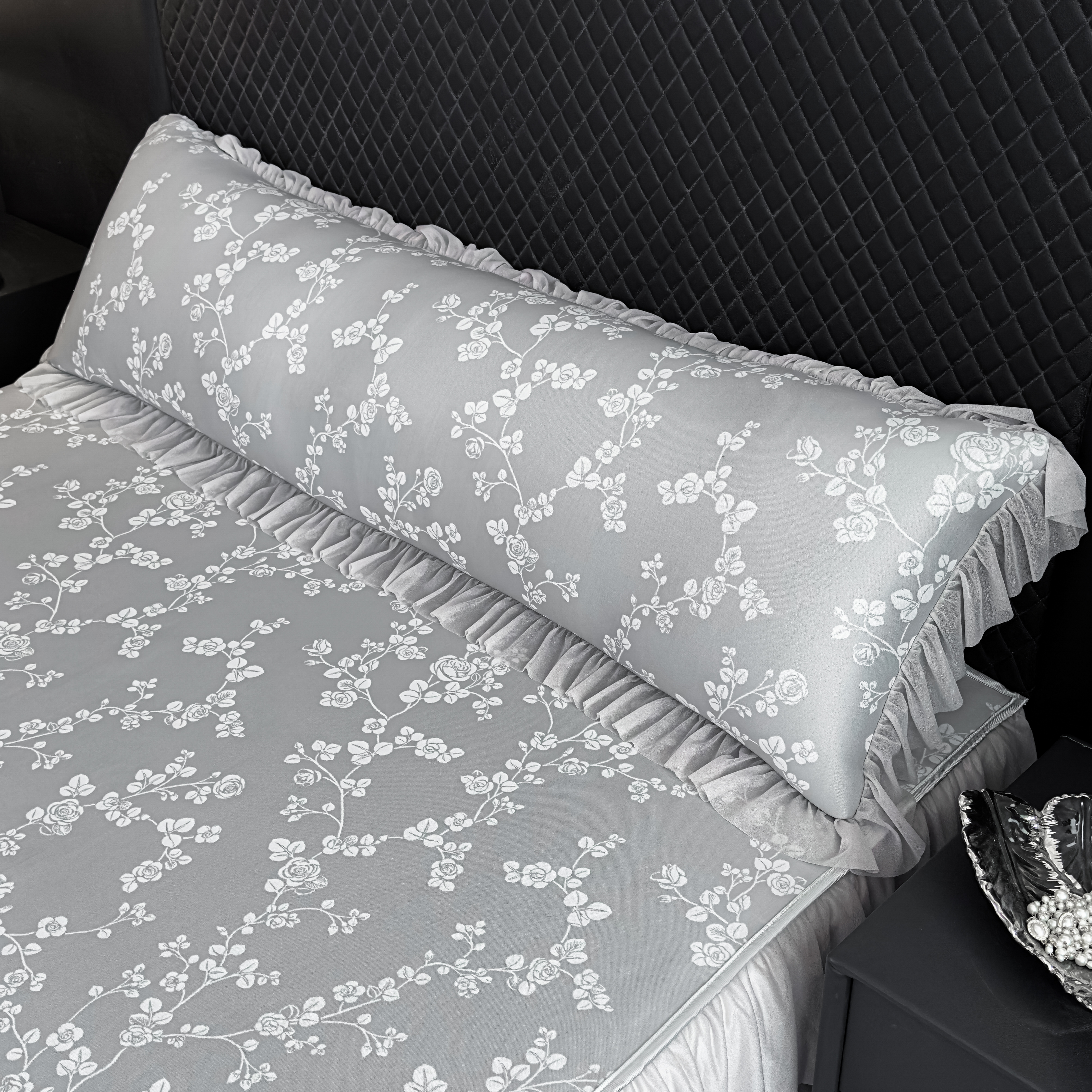 (总)家之硕家纺 2025新款雕花牛奶绒床裙款四件套,繁枝,黑玫瑰,蔓延之境 -咖,蔓延之境-黑,梦蝶,一支玫