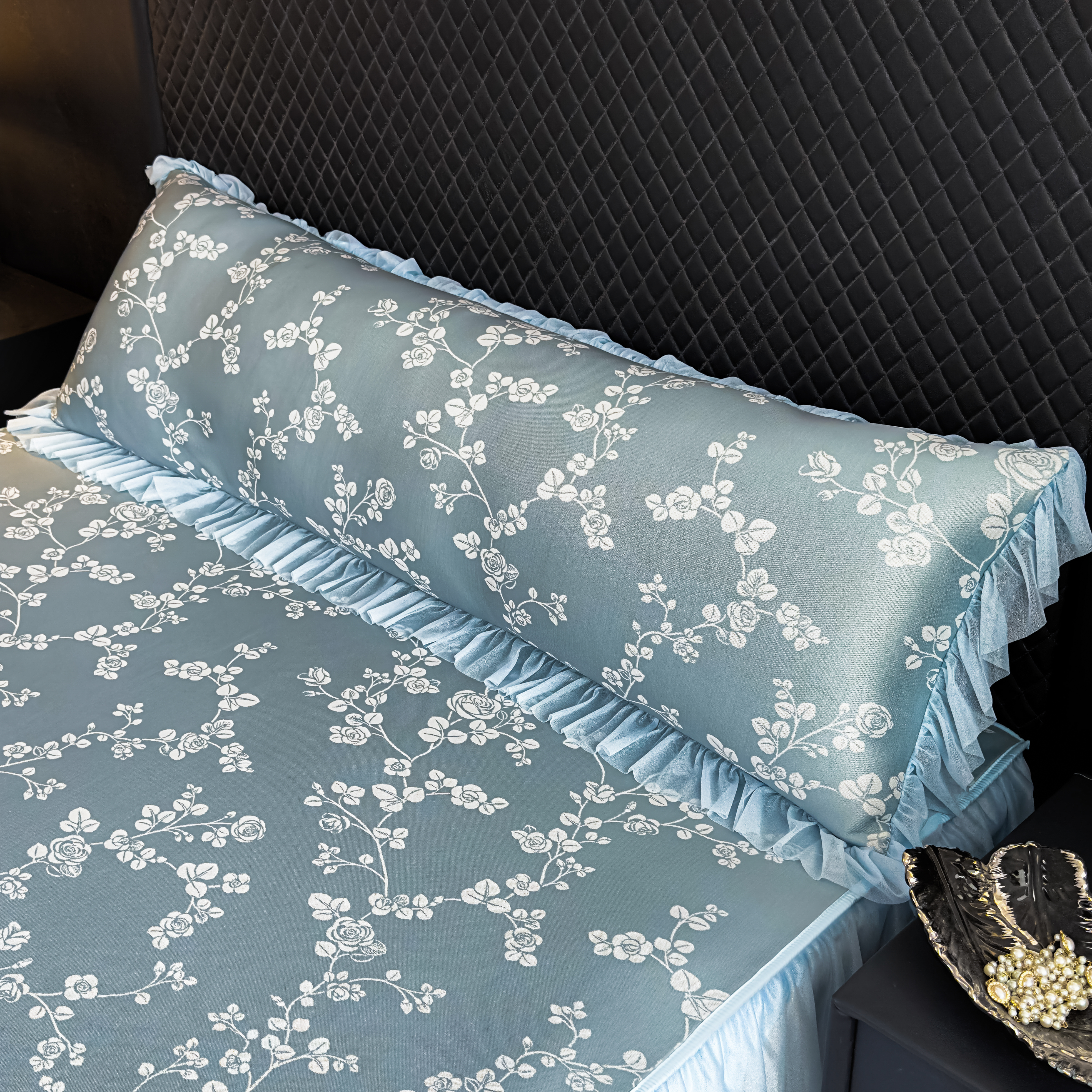 (总)家之硕家纺 2026春夏新款凉感提花床裙款凉席席子,百合捧花--粉,百合捧花--浅灰,百合捧花--深蓝,百合捧花--天蓝,蔷薇玫瑰--绿,蔷薇玫瑰--深灰,蔷薇玫瑰--深蓝,蔷薇玫瑰--天蓝