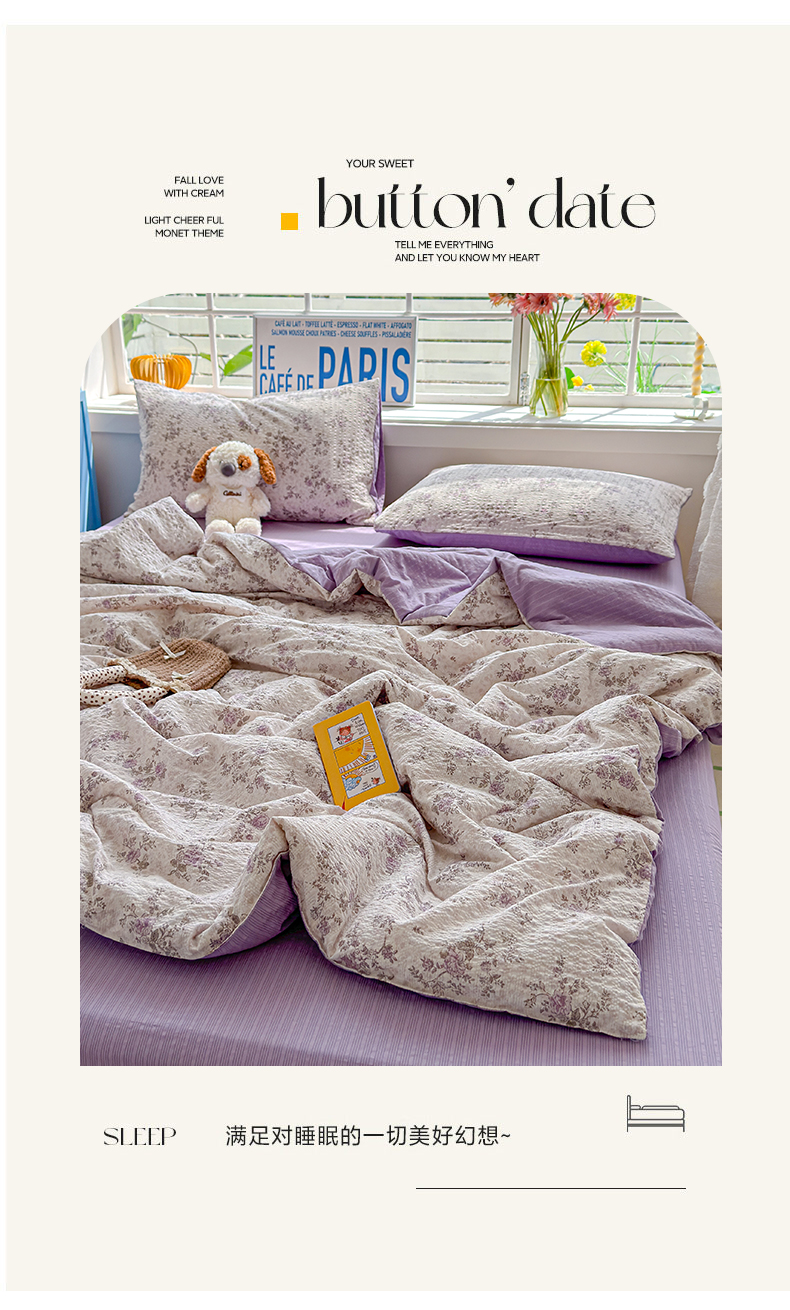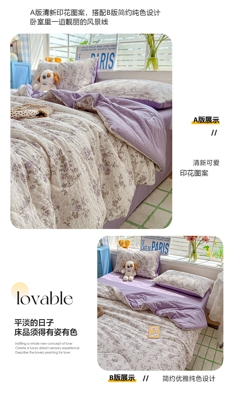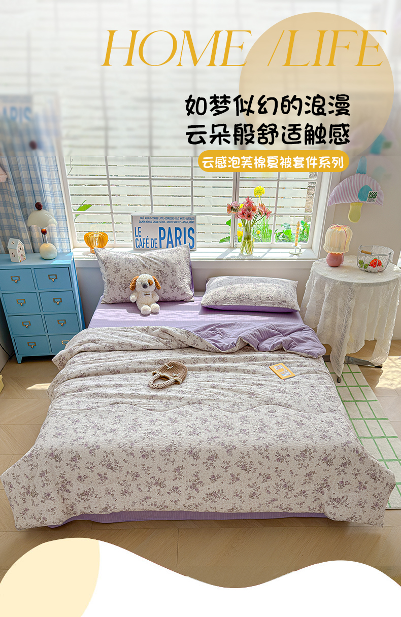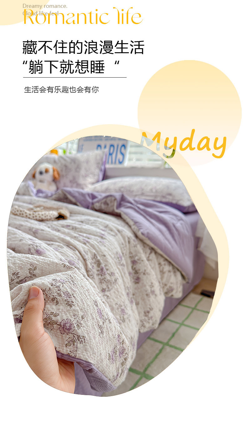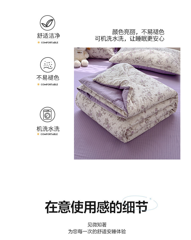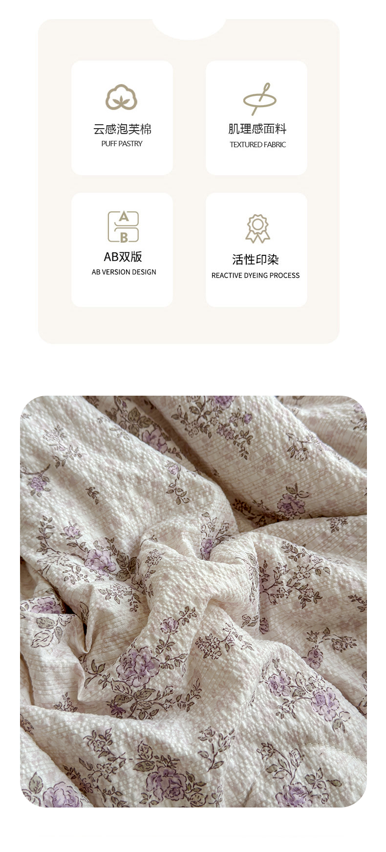 商品名称:玉海棠家纺 2026新款云感泡芙棉夏被空调被夏凉被四件套 紫黛花语