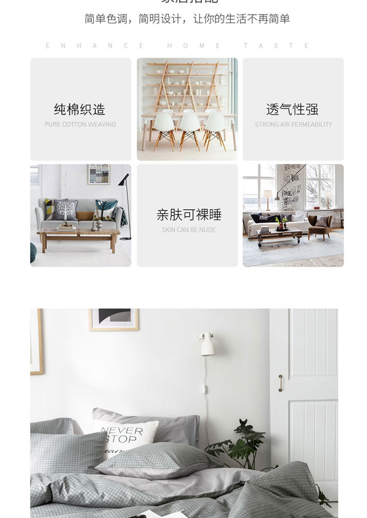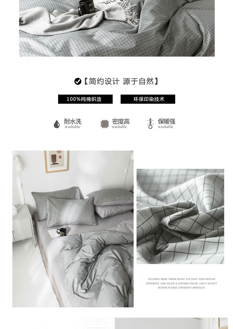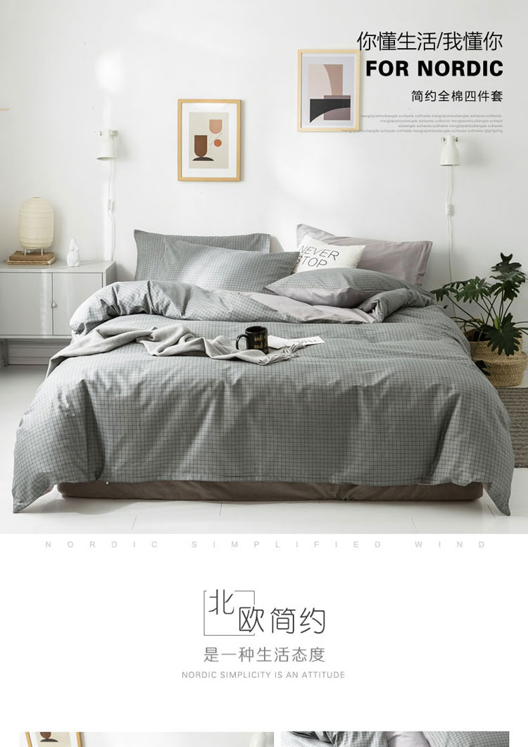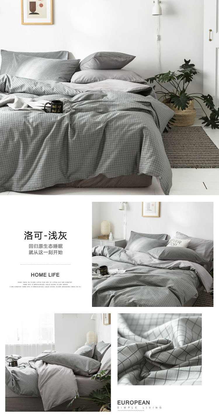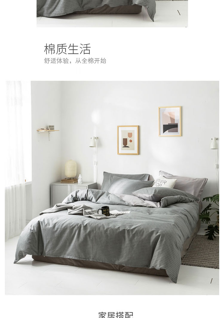 商品名称:梦家居 2019新品北欧简约全棉四件套 洛可-浅灰