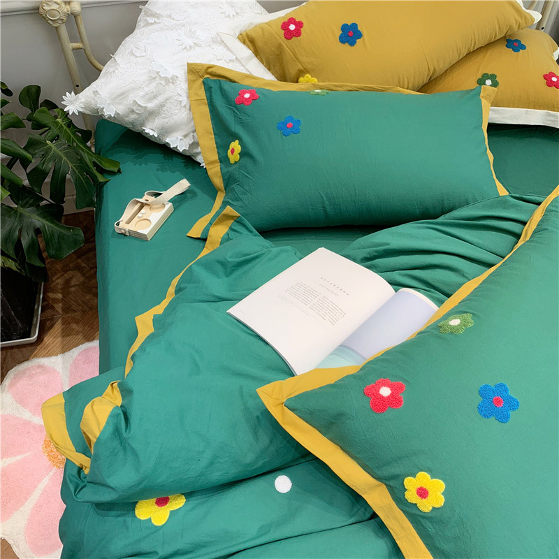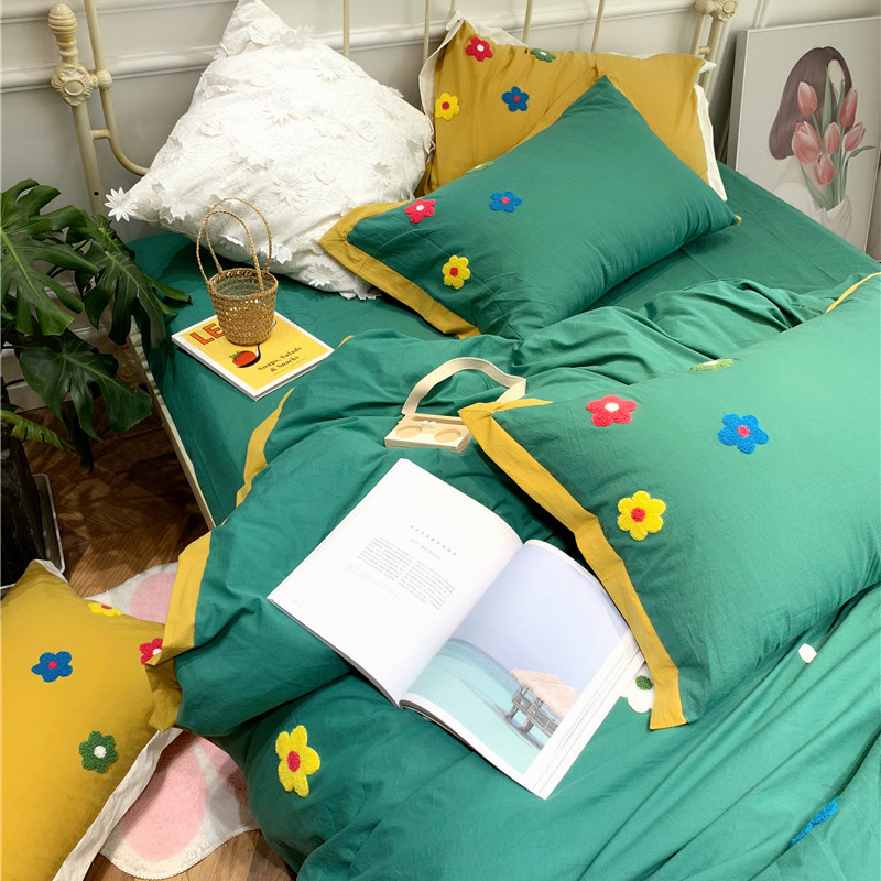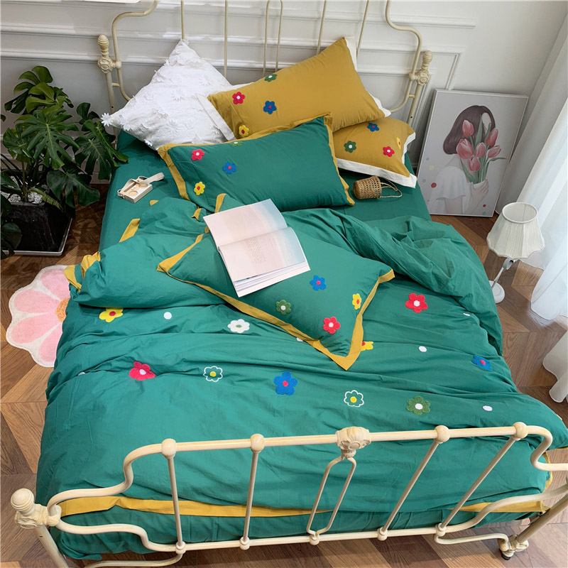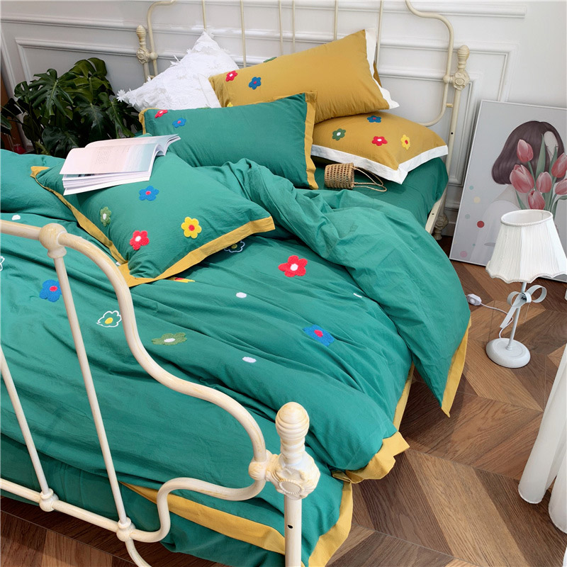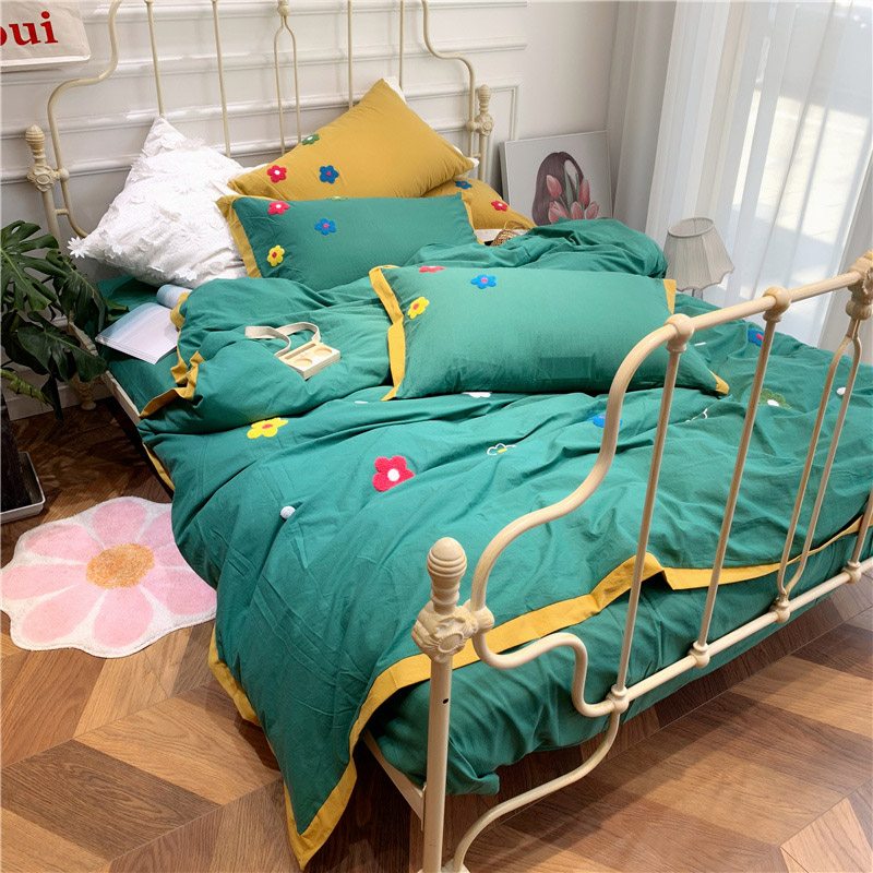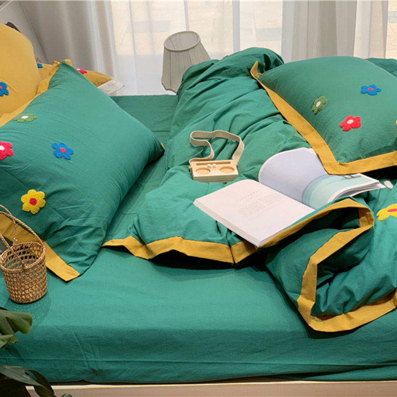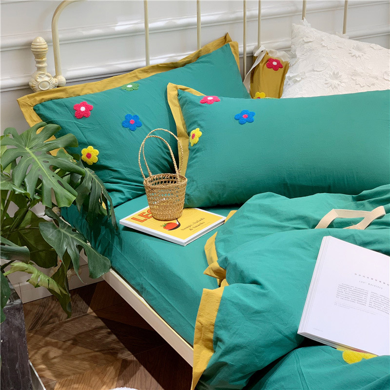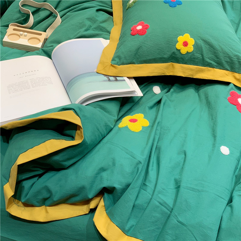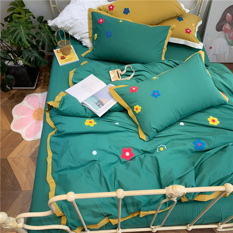 商品名称:润缦 新款加厚全棉水洗棉四件套 泫雅风-墨绿