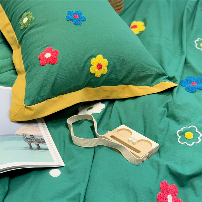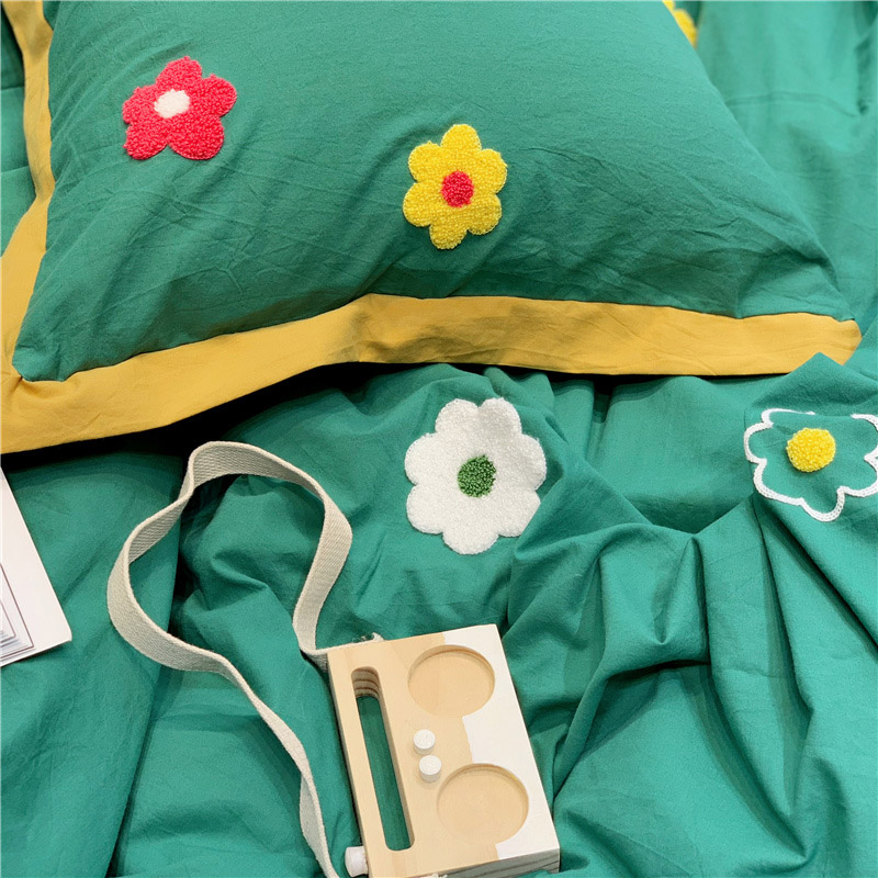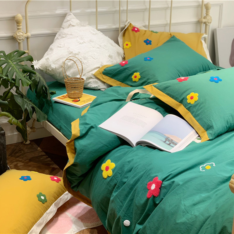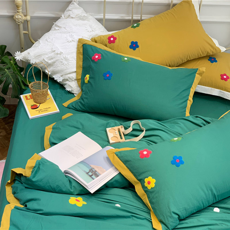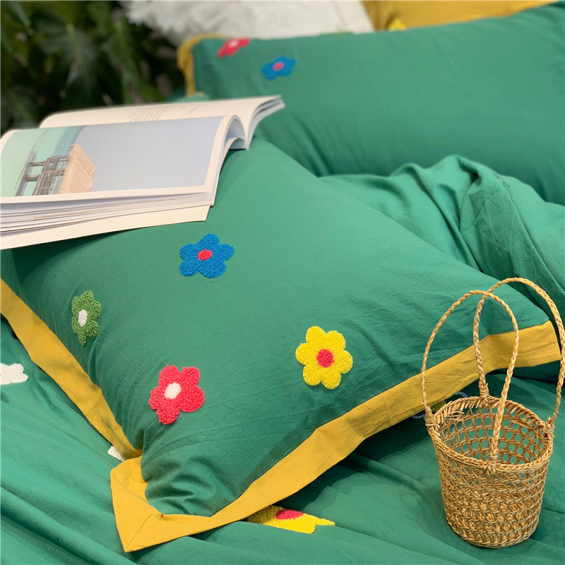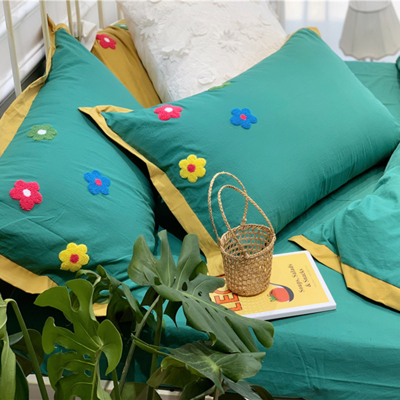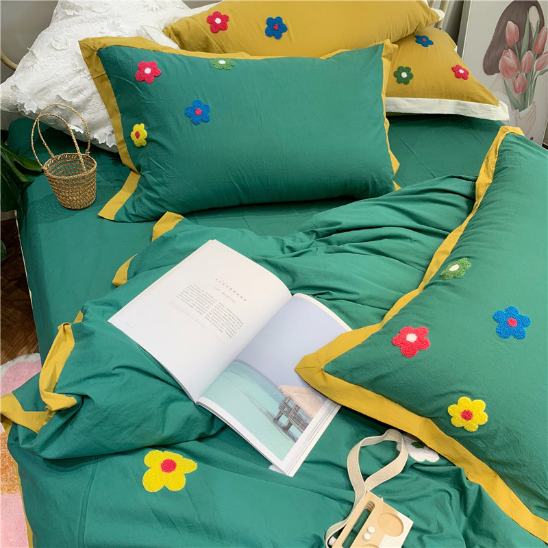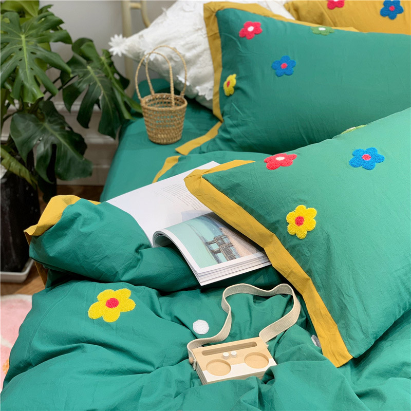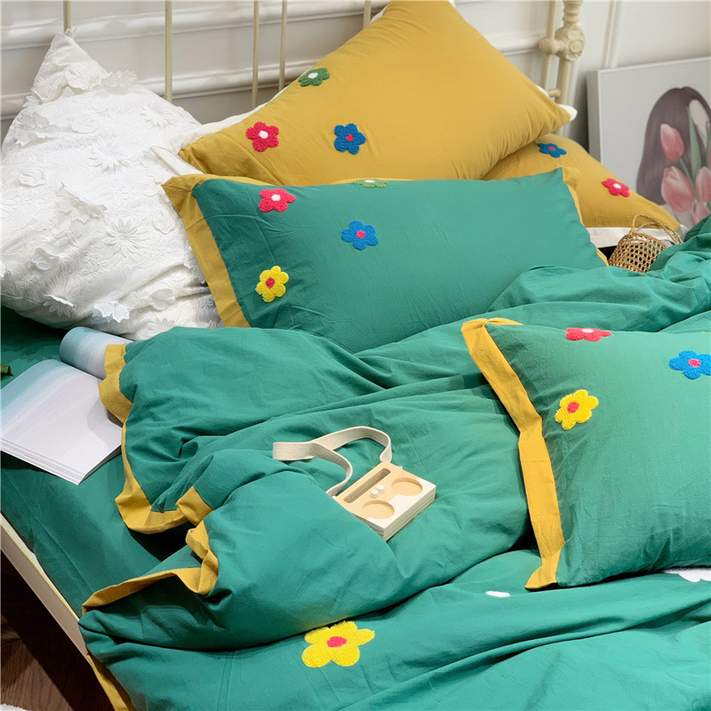 商品名称:润缦 新款加厚全棉水洗棉四件套 泫雅风-墨绿