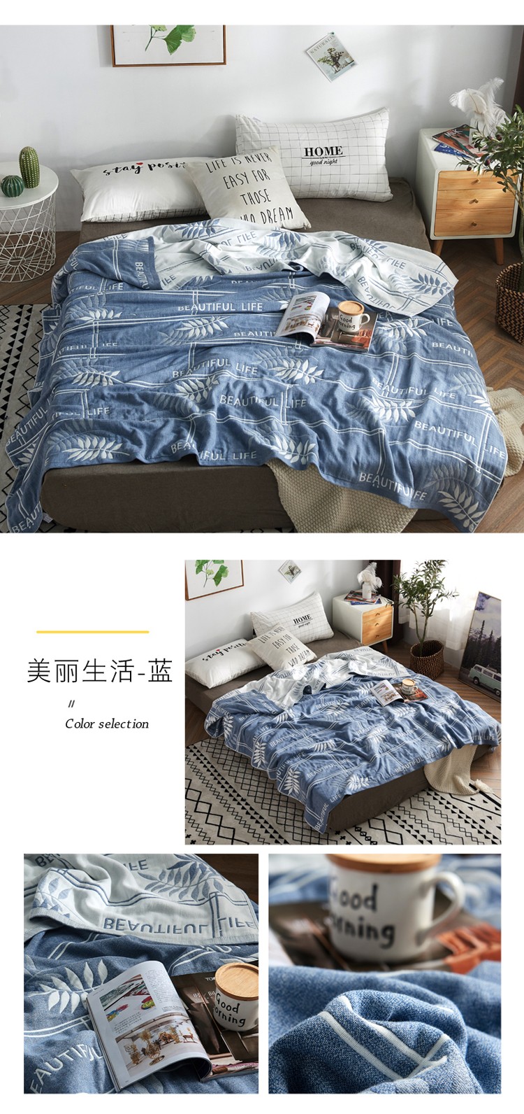 朴尔 五层毛巾被薄款夏被纱布被子盖毯空调被全棉 美丽生活-蓝
