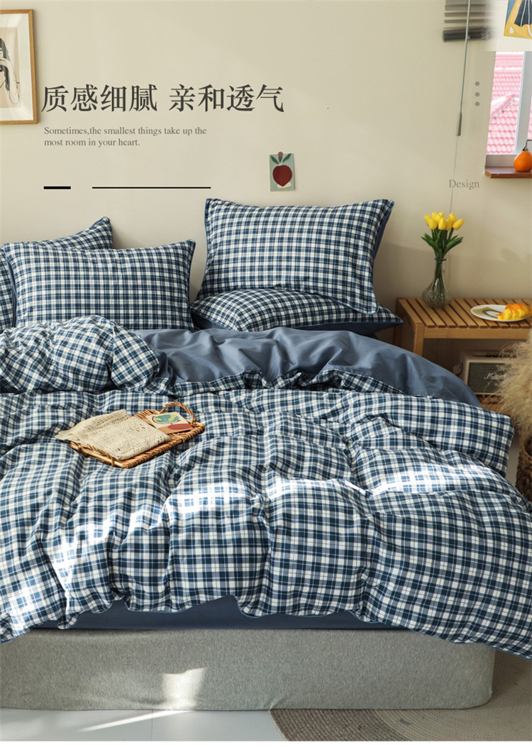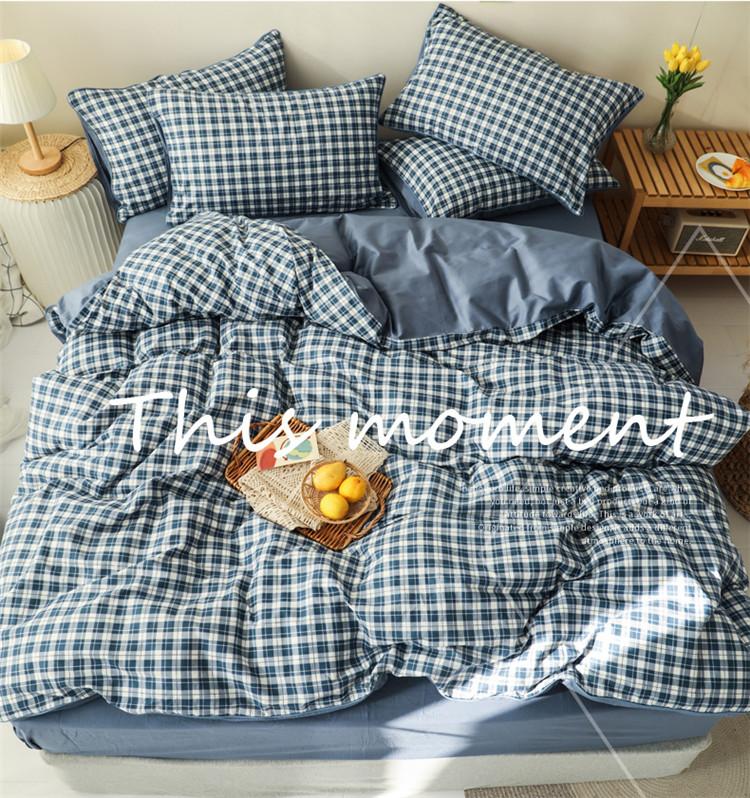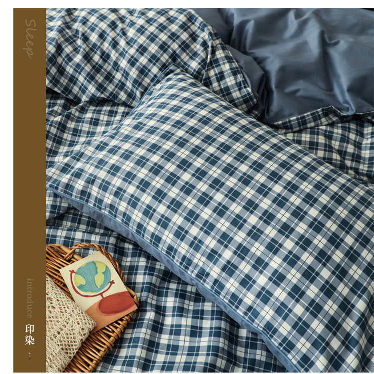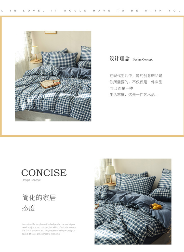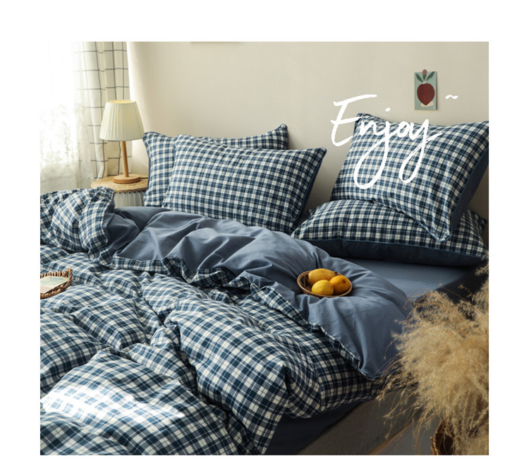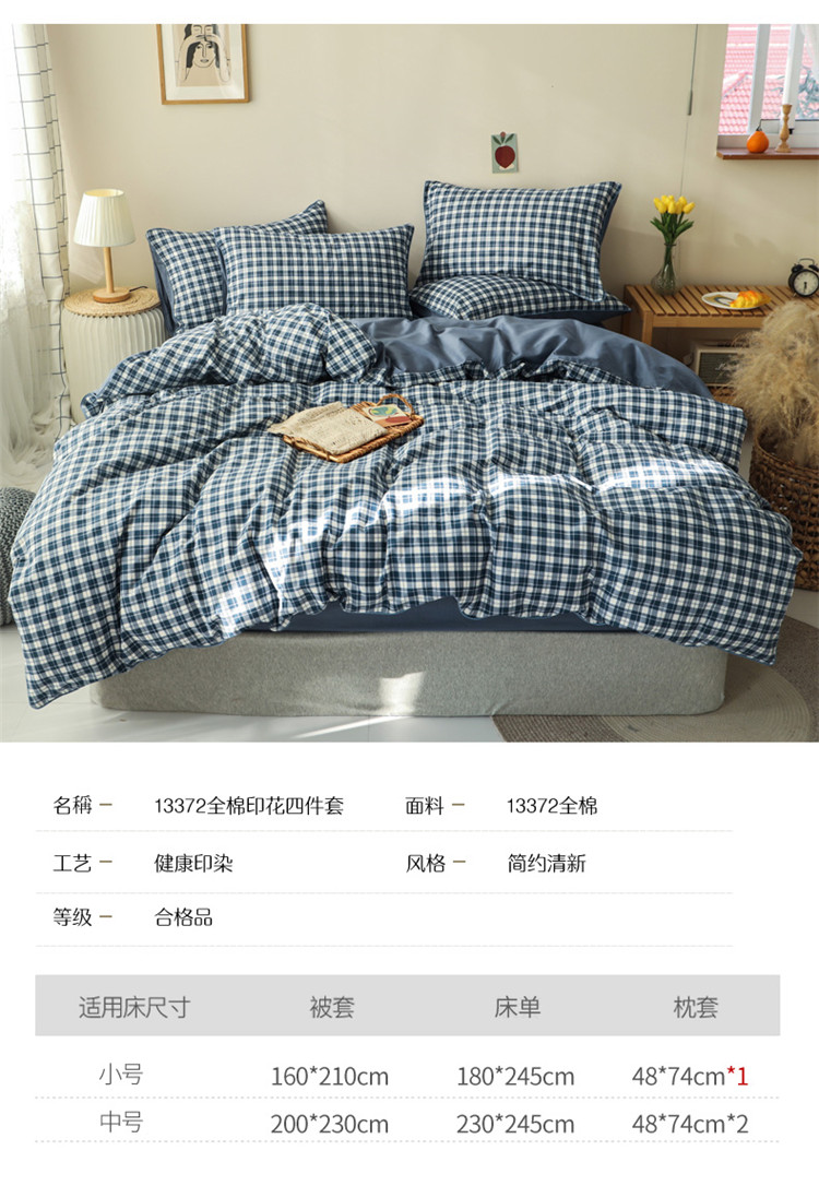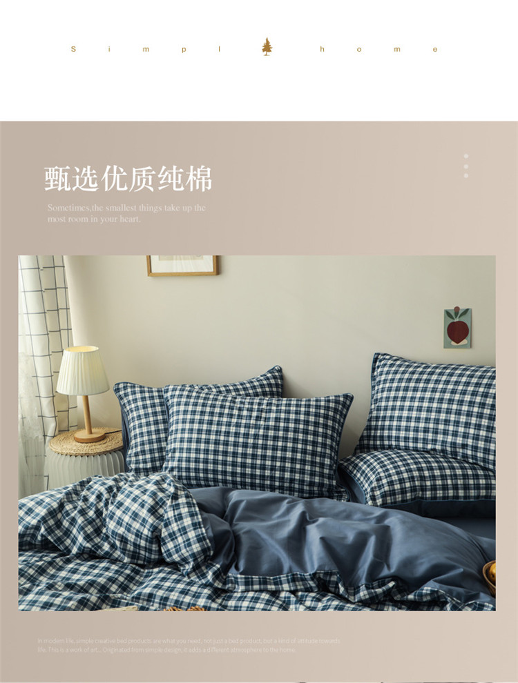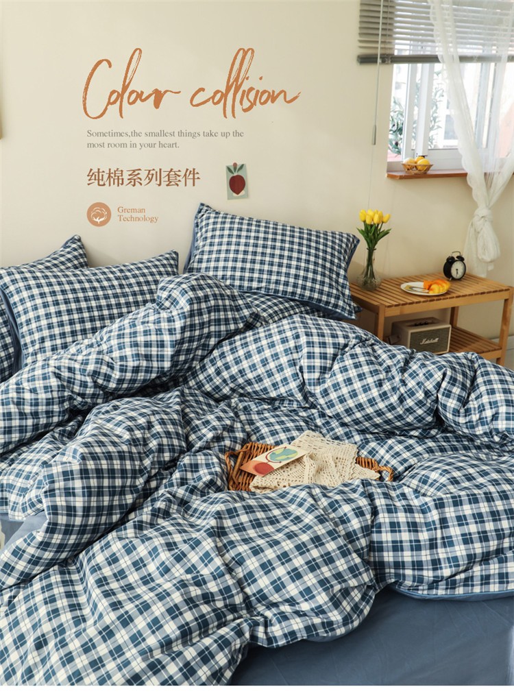 澳萝拉 2020新款13372全棉滚边格子款四件套 学院格