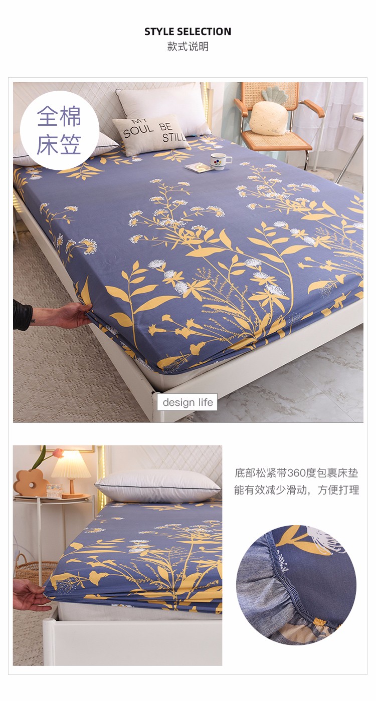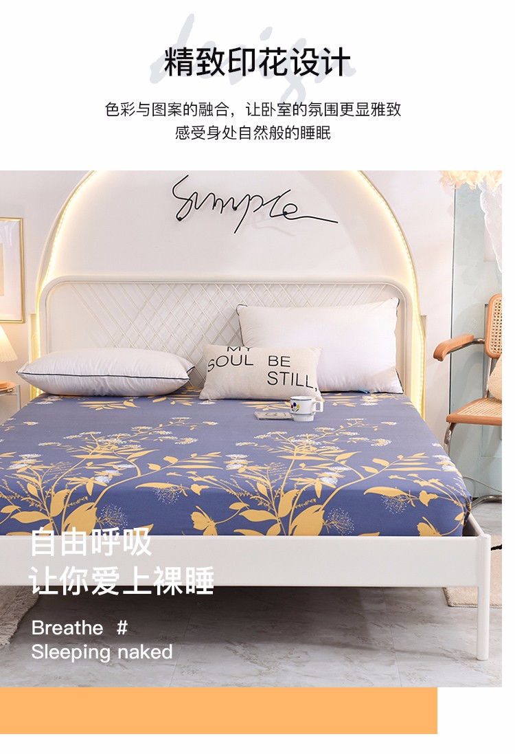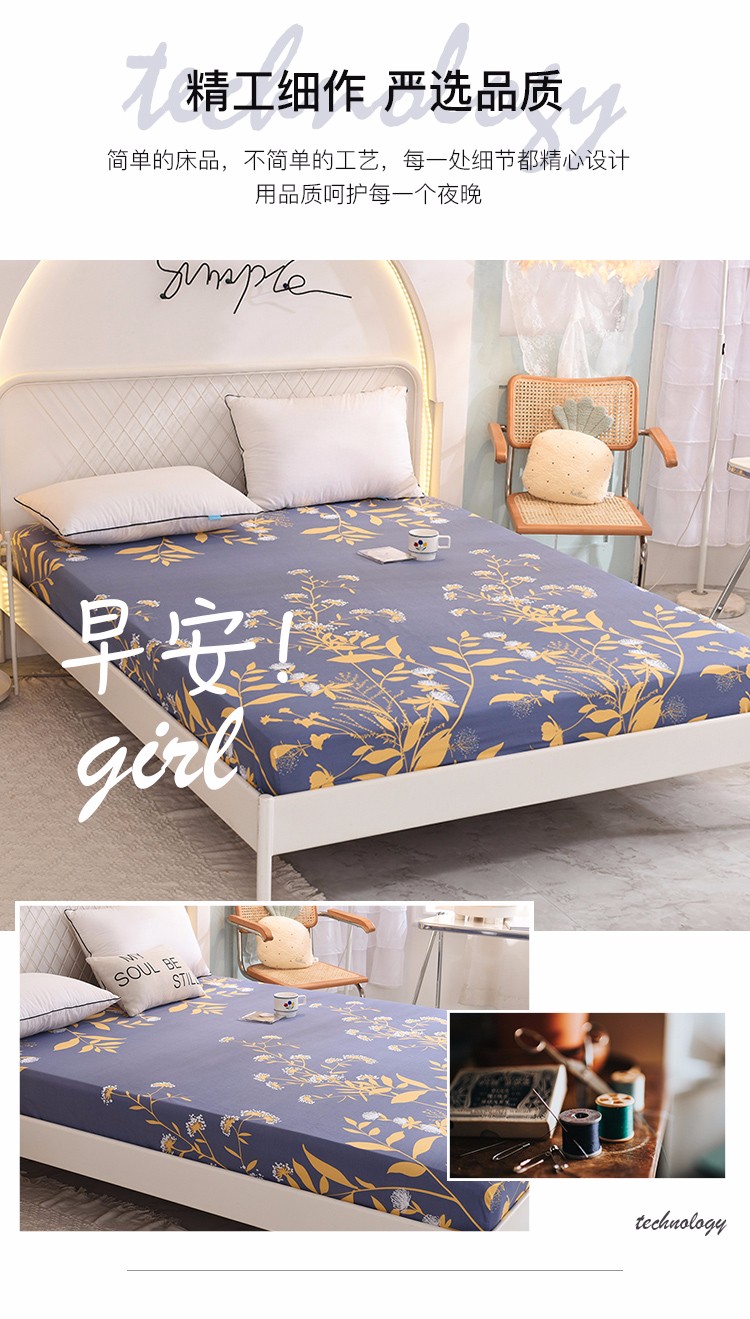 甜之梦家纺 2025新款13372全棉印花床笠羽叶