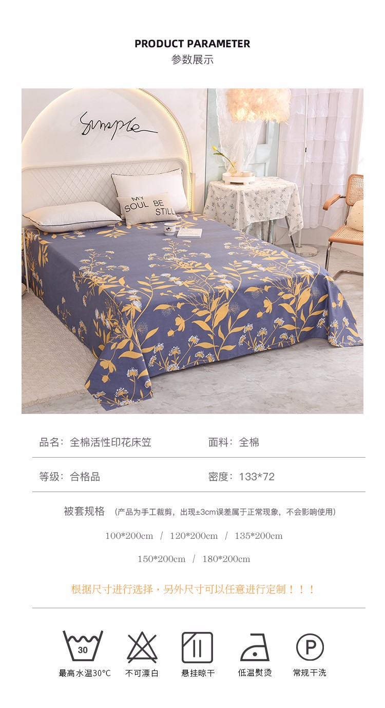 商品名称:甜之梦家纺 2025新款13372全棉印花床笠羽叶