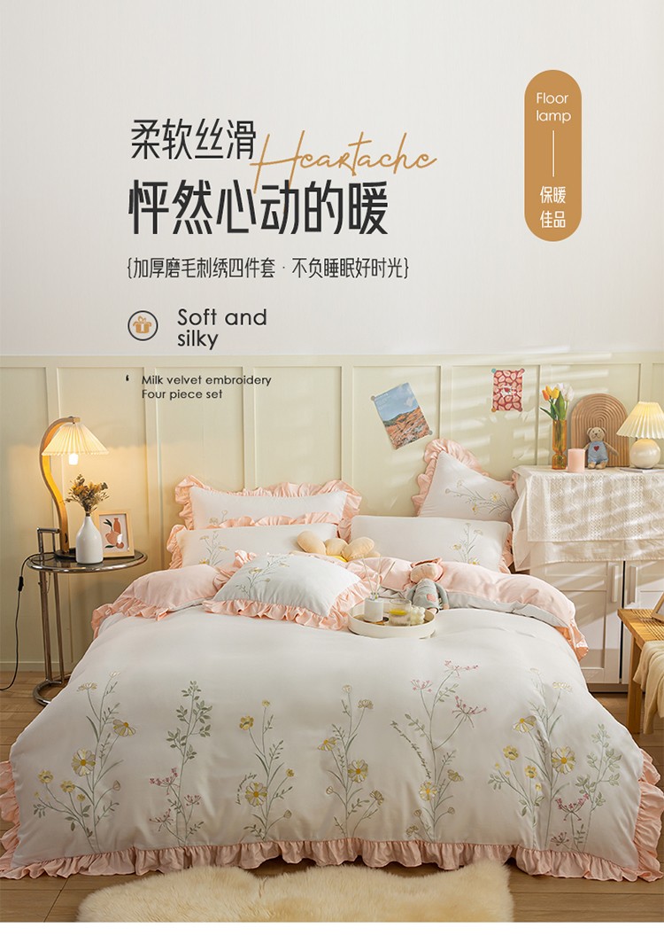 (总)涵宸家纺 2025新款全棉磨毛刺绣四件套系列-花蝴蝶,花蝴蝶-灰,花蝴蝶-奶白,花蝴蝶-浅粉