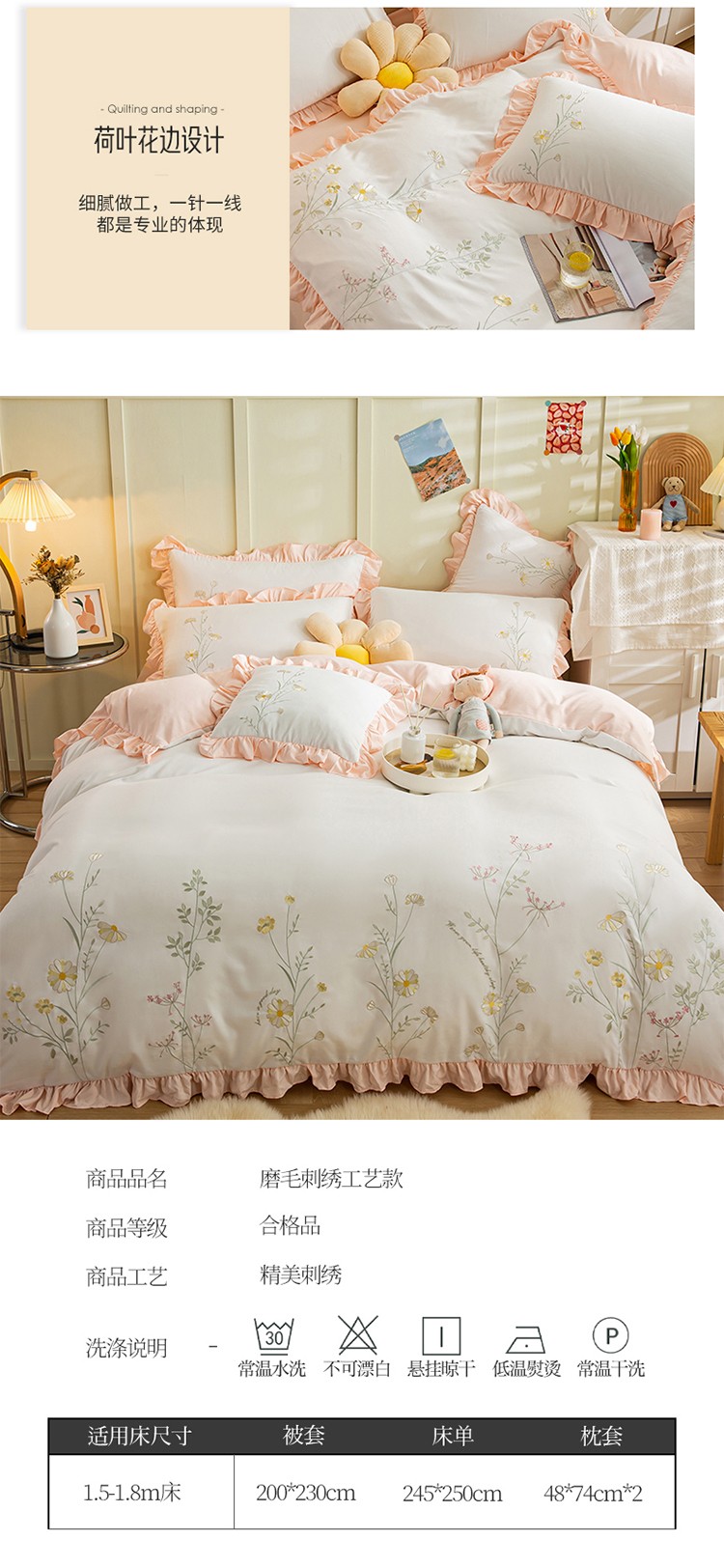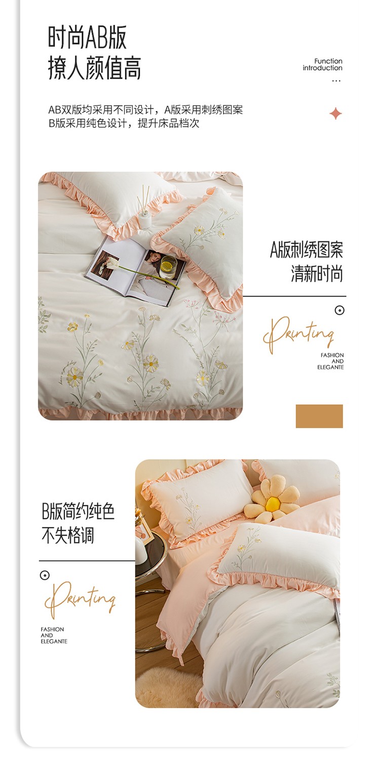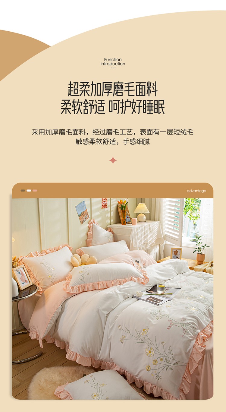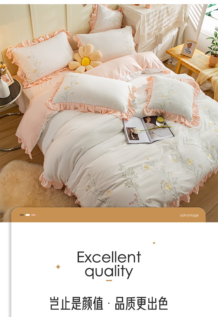 (总)涵宸家纺 2025新款全棉磨毛刺绣四件套系列-普莉,普莉-粉,普莉-绿,普莉-奶白