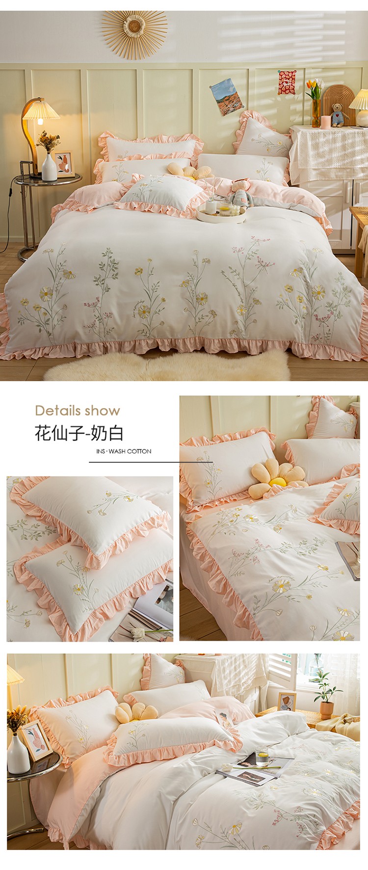 商品名称:涵宸 2022水洗氧棉刺绣四件套 花仙子— 奶白