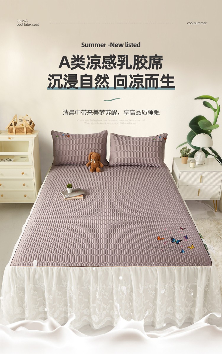 好眠好梦 2023新款A类乳胶床裙凉席-蝶恋花系列 烟熏紫