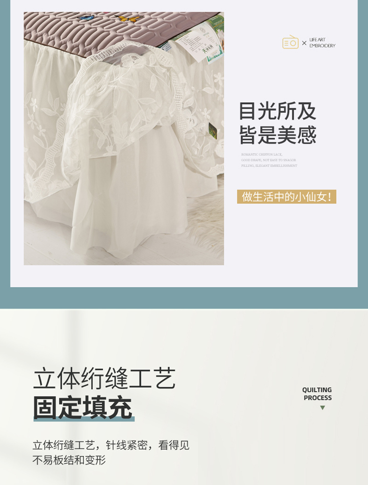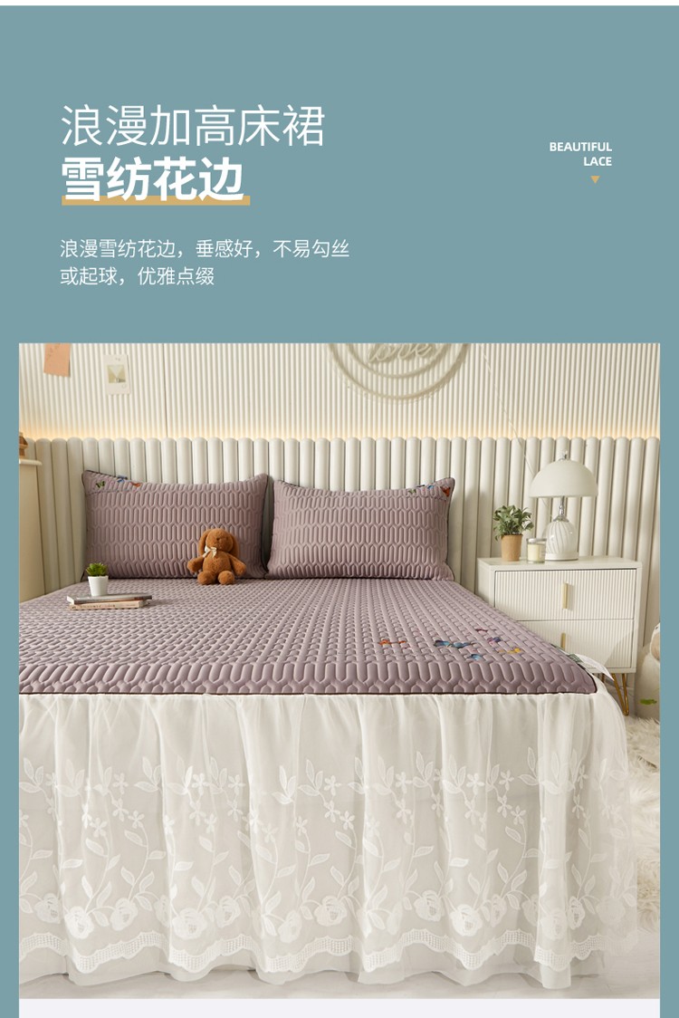 (总)好眠好梦 2023新款全棉133*72蕾丝单床裙,白玫瑰,弗洛伦,克莱因 蓝,洛神,情人节,温语 黑,温语 蓝,永恒花语