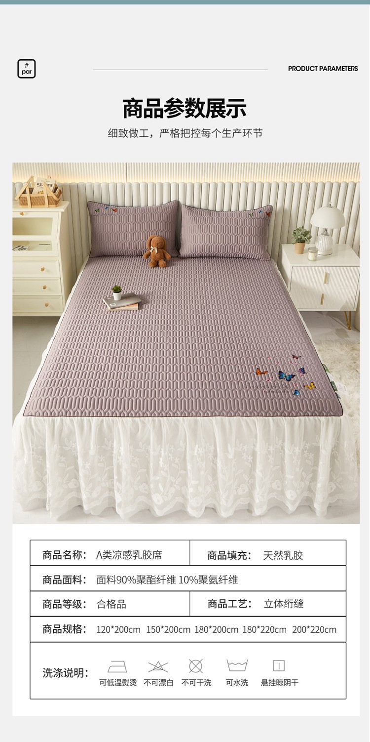 (总)好眠好梦 2023新款A类乳胶床裙凉席-蝶恋花系列,宾利蓝,淡雅米,橘橙黄,暖黄,青绿,天空蓝,烟熏紫,樱花粉,珍珠灰