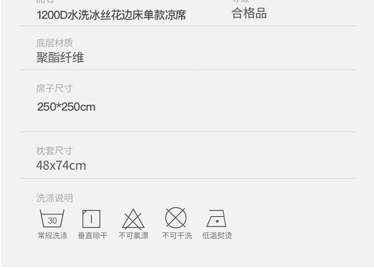 凉席:250*250*1 枕套:48*74*2
