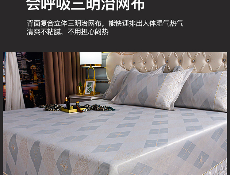 (总)印季家纺 2025新款轻奢简约凉感丝泡泡席-格调凉席,藏蓝,米黄,墨绿,浅粉,银灰