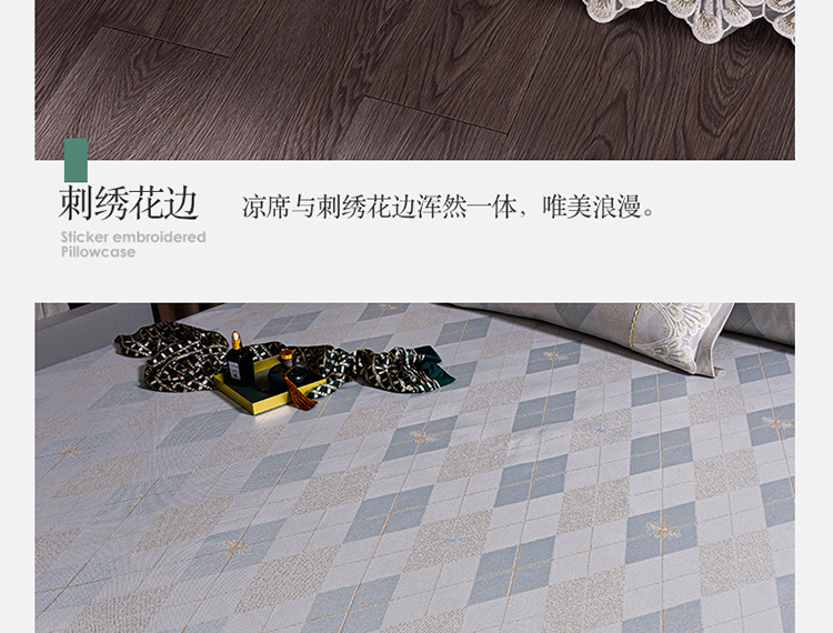 (总)印季 2025新款5A级抗菌加厚绣花冰丝席-流星雨,豆沙,灰咖,天蓝,蓝灰,水绿,银灰