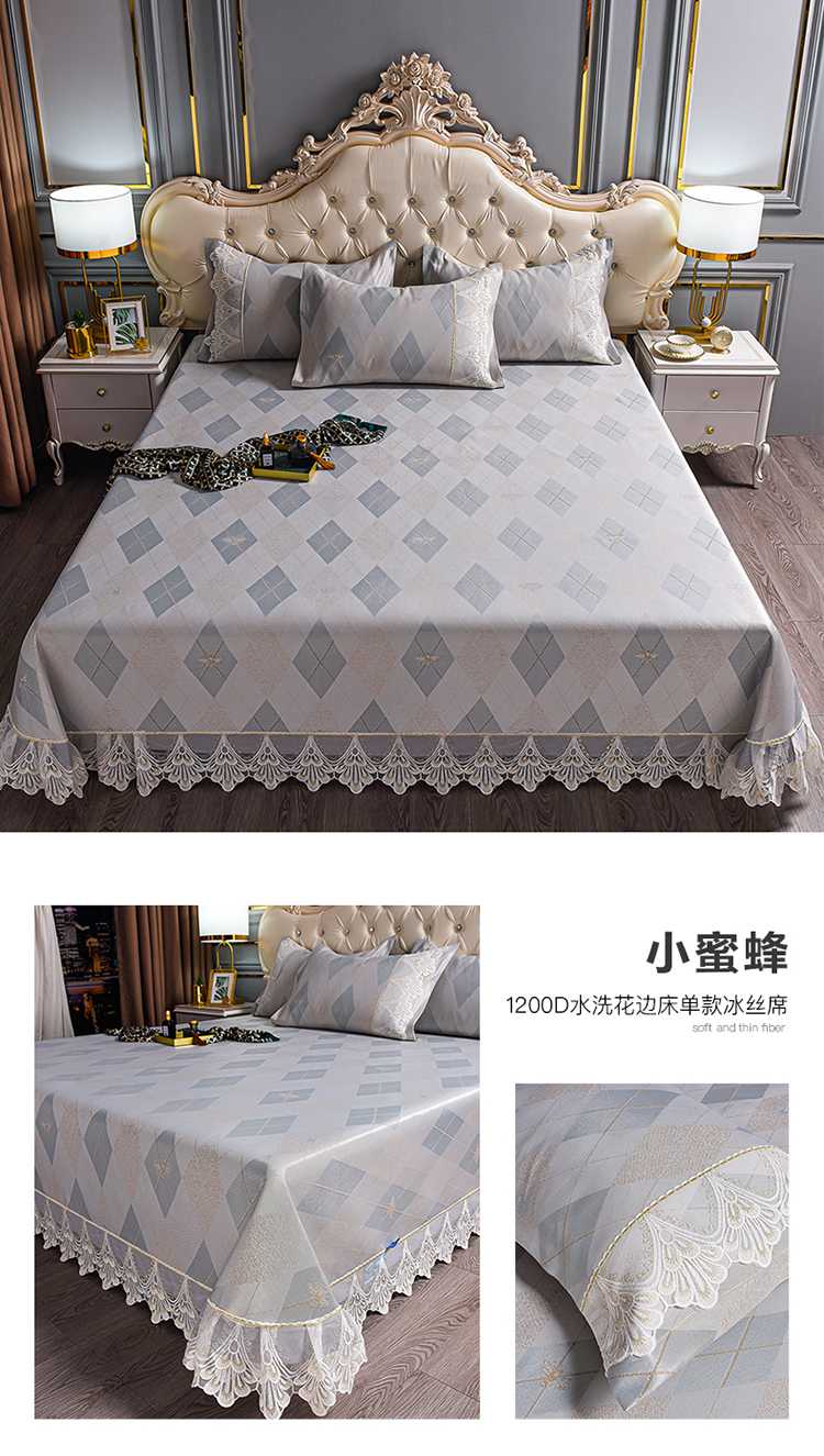 印季家纺-2023新款1200D水洗冰丝花边床单款凉席 小蜜蜂