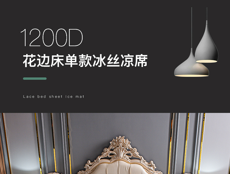 商品名称:印季家纺-2023新款1200D水洗冰丝花边床单款凉席 小蜜蜂