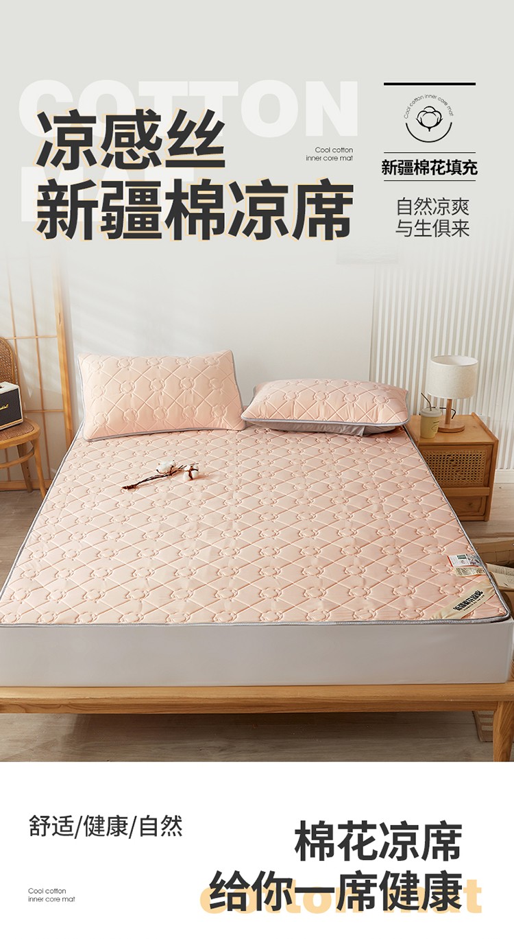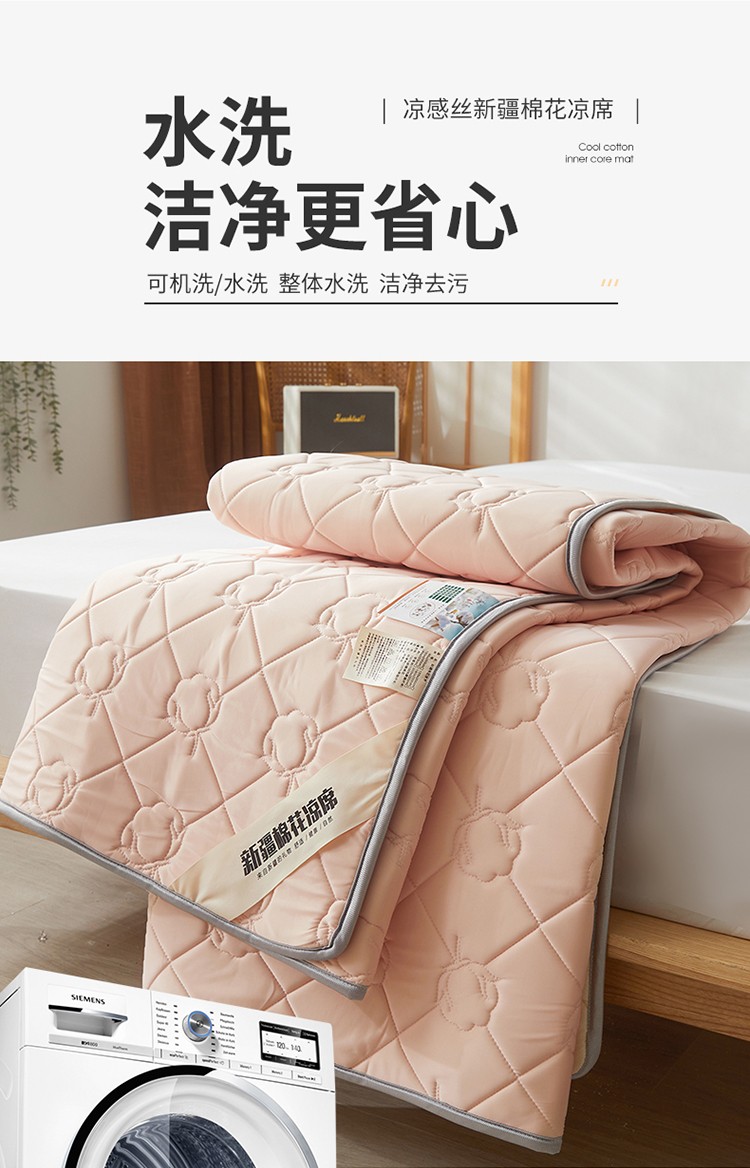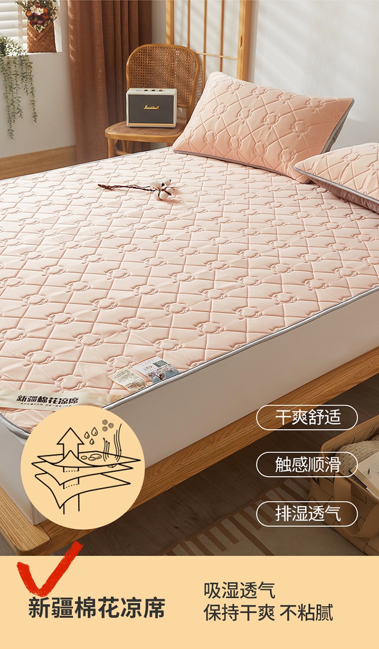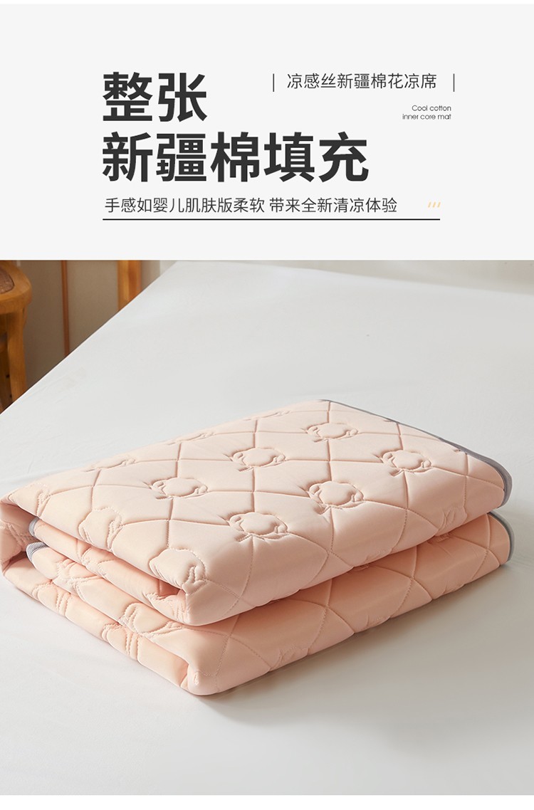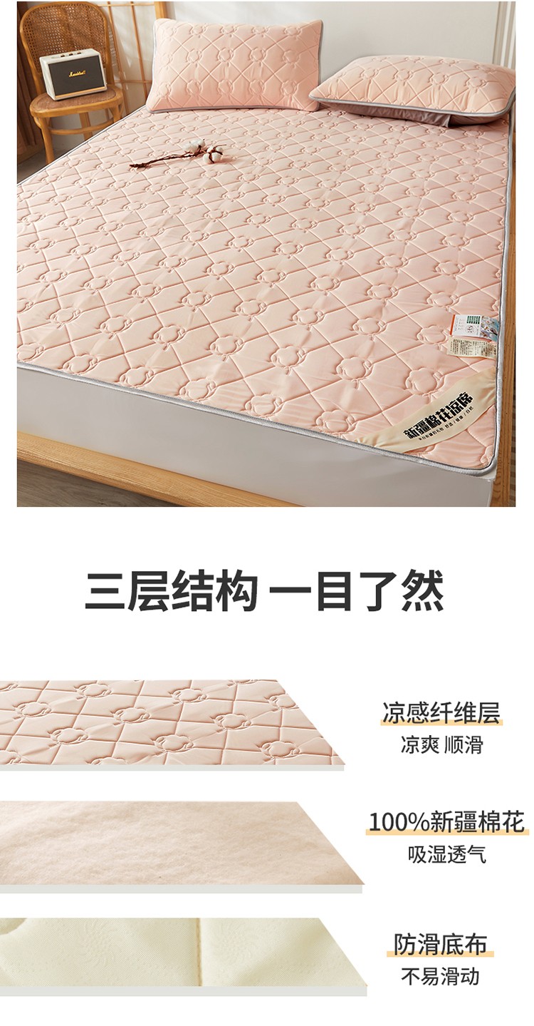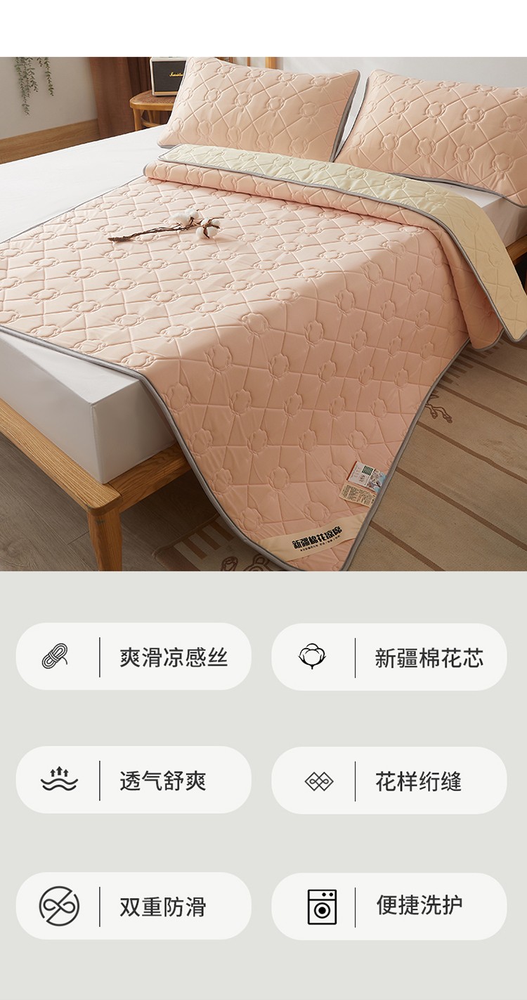 西域种棉人 新疆棉花凉席冰丝凉感丝平铺款加厚床单款三件套纯色水洗藕荷玉