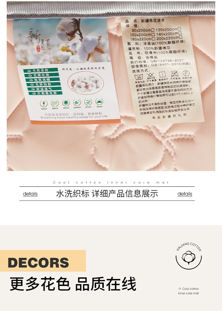商品名称:西域种棉人 新疆棉花凉席冰丝凉感丝平铺款加厚床单款三件套纯色水洗藕荷玉