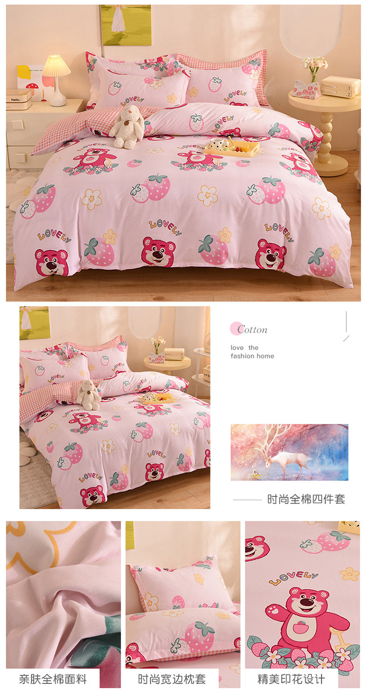 当前位置: 91家纺网 > 商品网购 > 床品套件 > 四件套 > 全棉普通四件套 > 甜之梦 2025新款纯棉印花12868四件套草莓熊