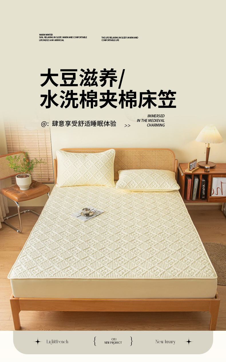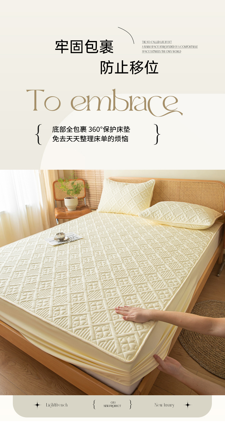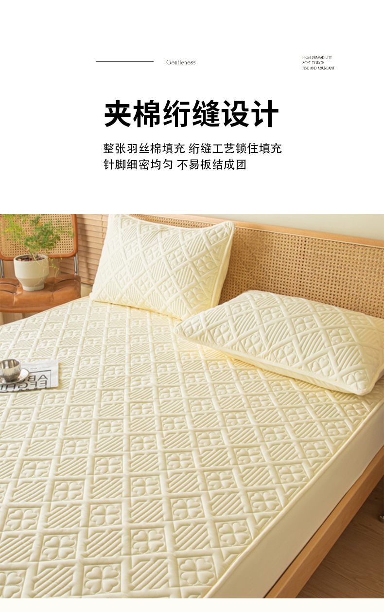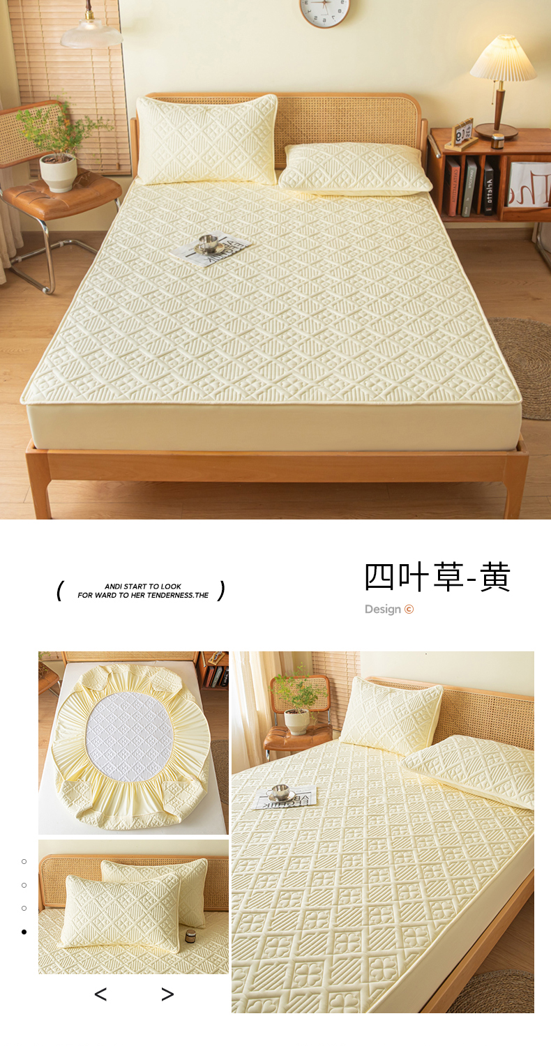 (总)吉祥家纺 2023新款水洗棉夹棉床笠,粉格,黄格,蓝格,绿格,四叶草-粉,四叶草-黄,四叶草-灰,四叶草-蓝,四叶草-绿