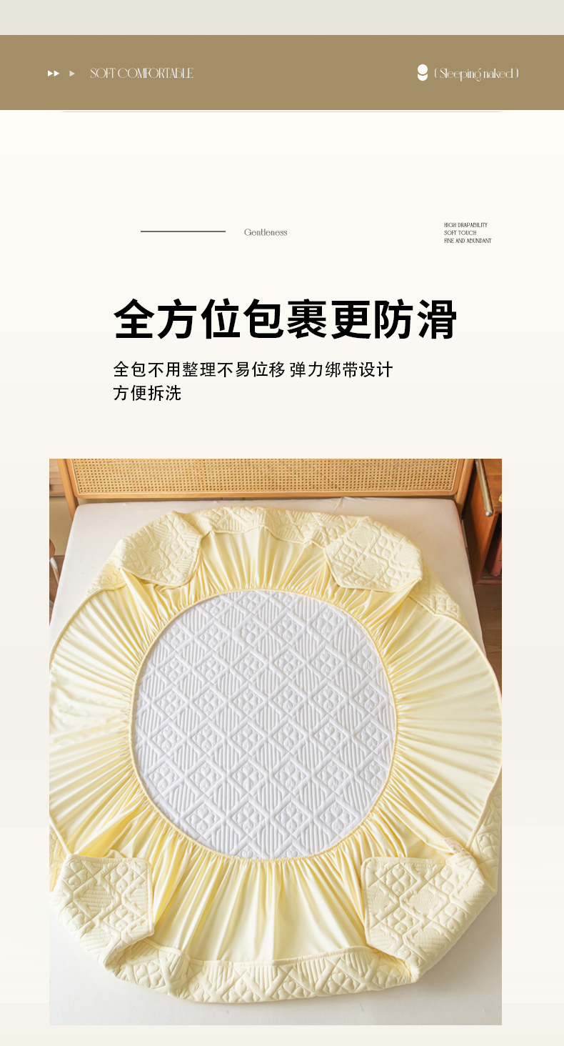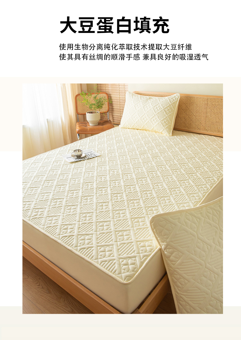 商品名称:吉祥家纺 2023新款水洗棉夹棉床笠 四叶草-黄