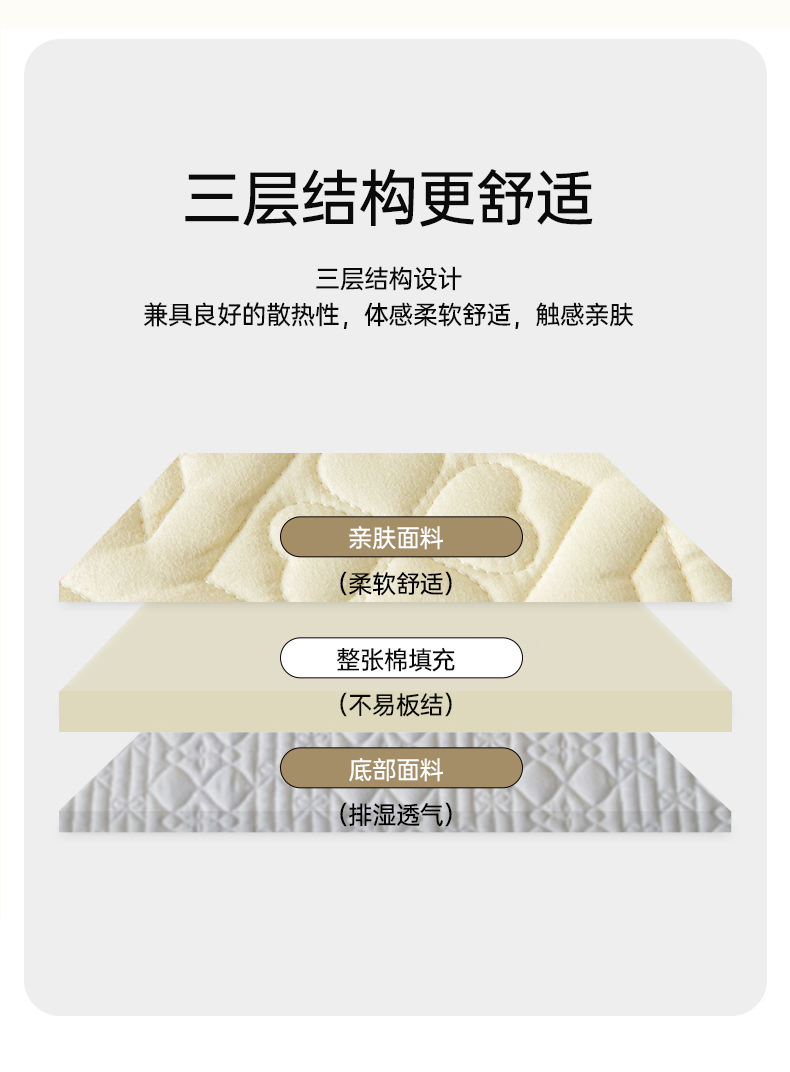 (总)吉祥家纺 2025新款亲肤小方格软床垫,凯线白,凯线黑,凯线灰