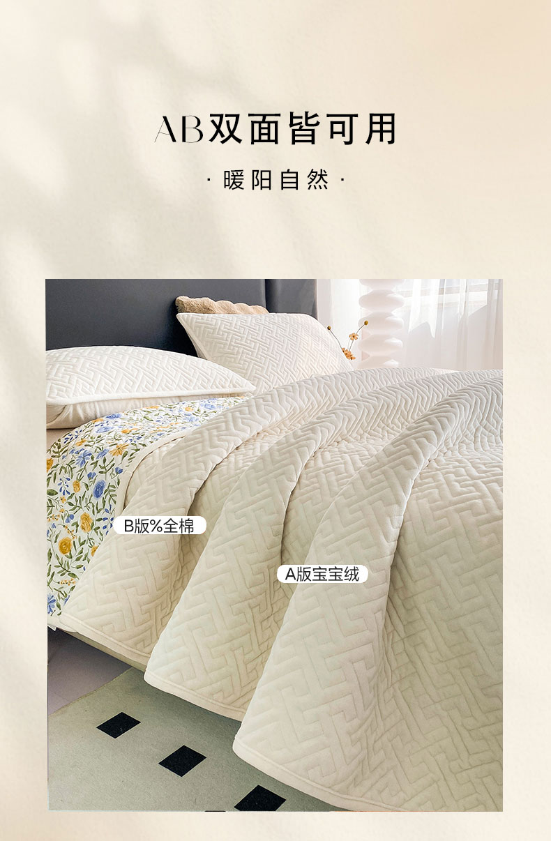 恋绒家纺 2025新款高克重240克宝宝绒床盖一面绒一面棉床罩 蔷薇粉