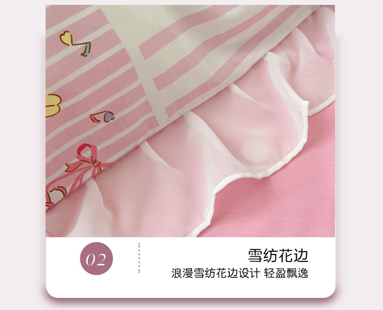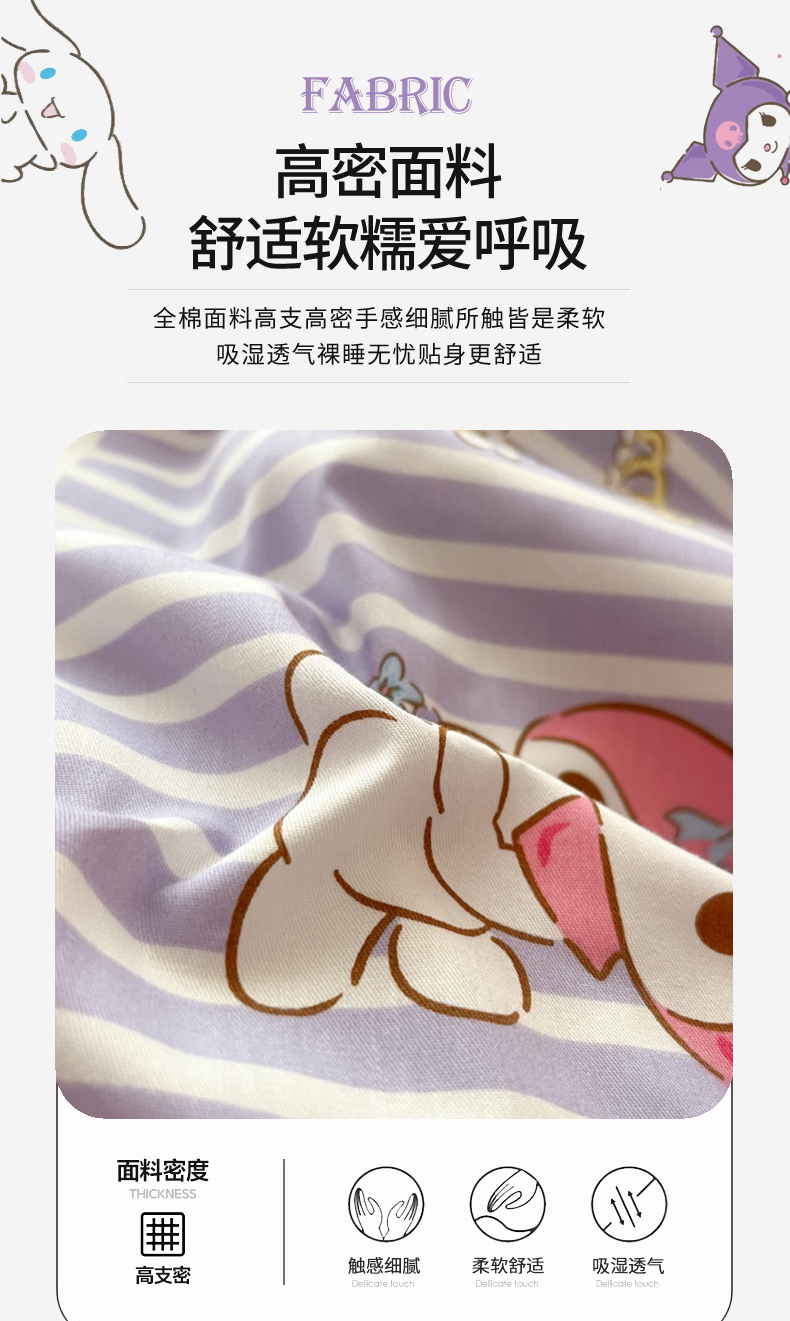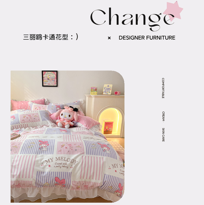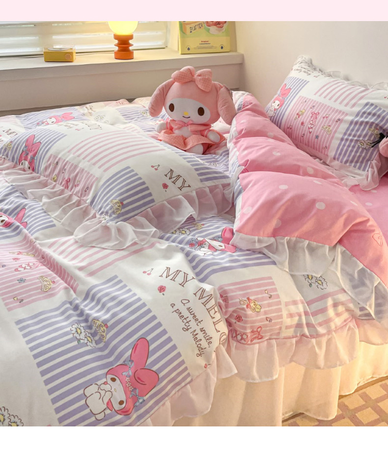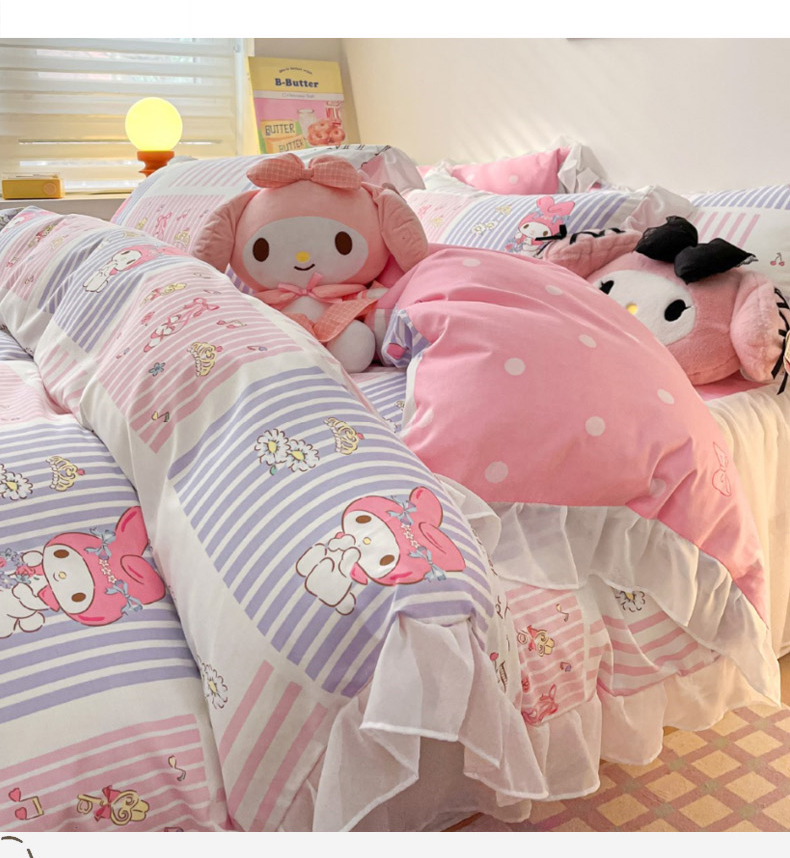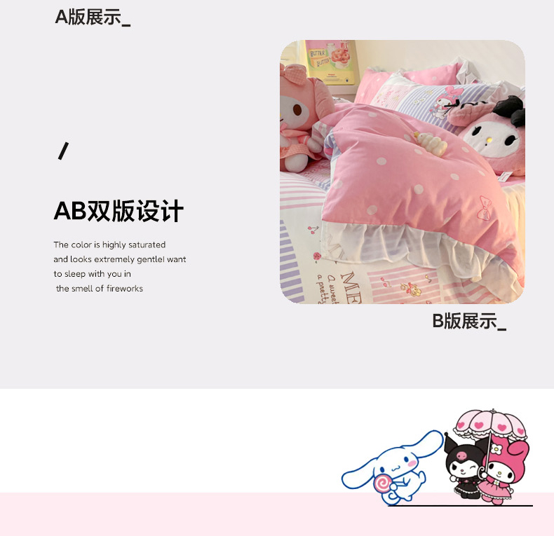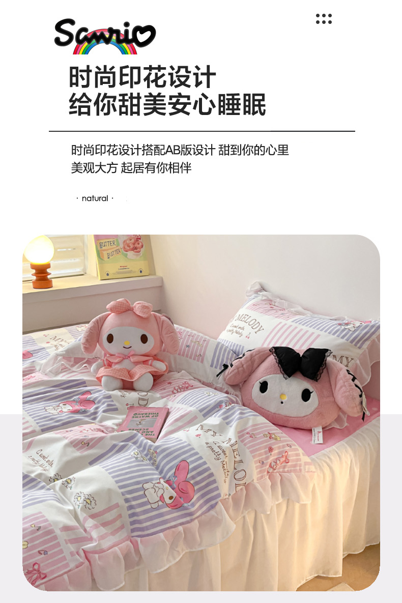 当前位置: 91家纺网 > 商品网购 > 床品套件 > 四件套 > 全棉普通四件套 > 暮思家居 2024新款正版授权三丽鸥雪纺纱花边款系列全棉四件套 花边款-少女美乐蒂