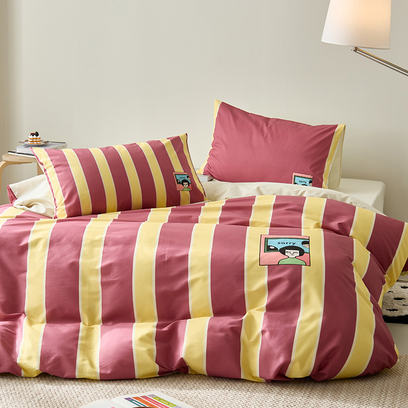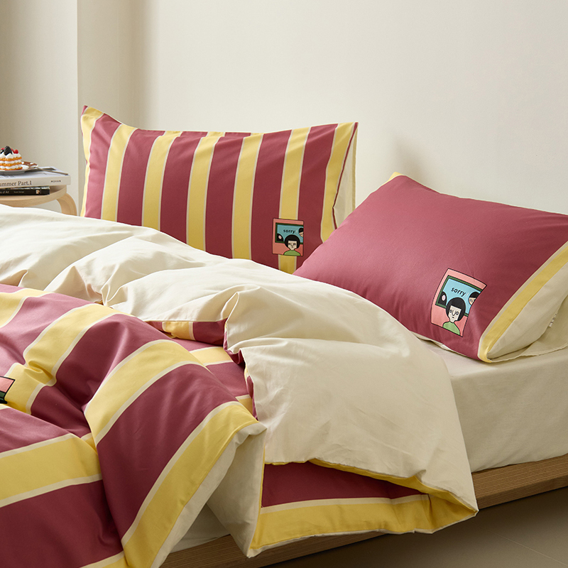 (总)原研家居 2025新款棉麻色织条纹系列四件套,棉麻黄条,棉麻绿条,棉麻粉条