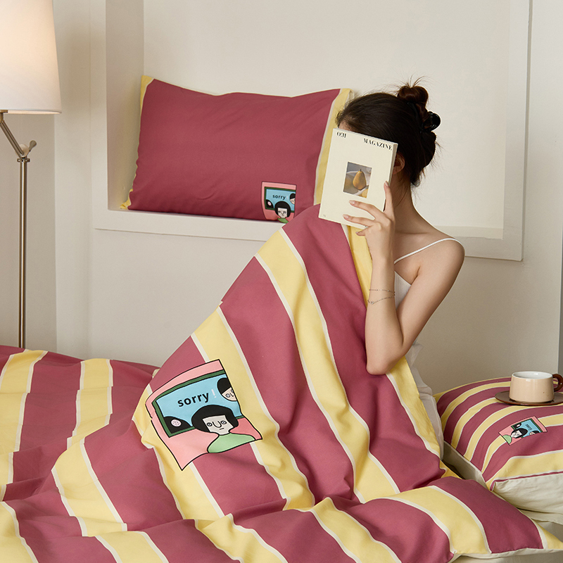 (总)原研家居 2023新款40支全棉13070印花四件套-野兽派系列,樱桃猫,公主猫,波浪猫,黑乖,蓝条狗,小花狗,竹叶熊,水果茶,波点苹果,生椰冰淇凌,青春