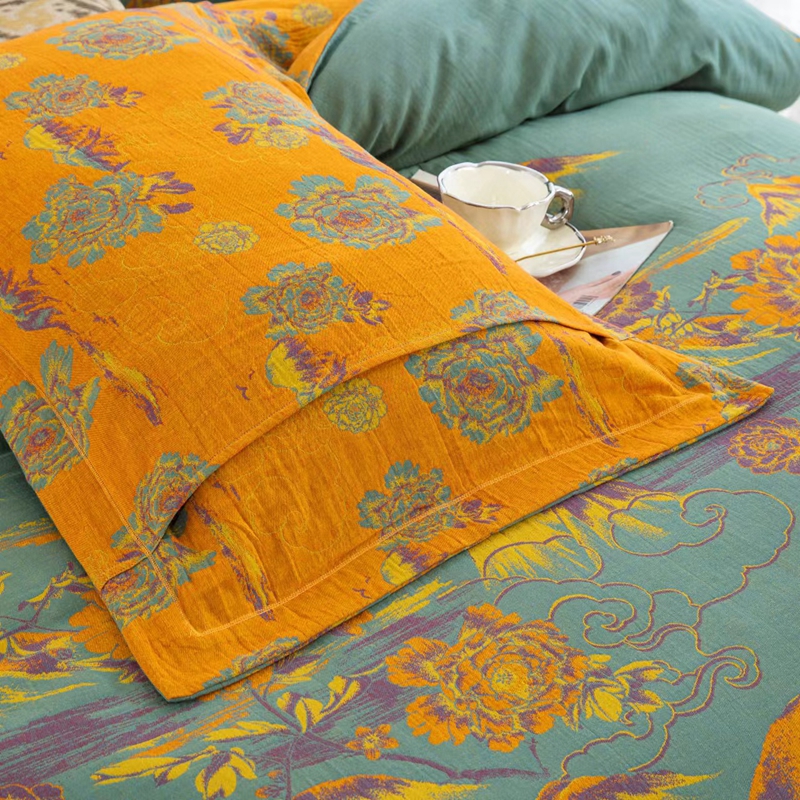 (总)双层纱家居 2025新款全棉纯棉双层纱工艺款四件套,素纱蝶梦-红蕊,素纱蝶梦-陌森,素纱蝶梦-青栀,素纱蝶梦-纤芷,素纱蝶梦-南鸢,素纱蝶梦-玉茗