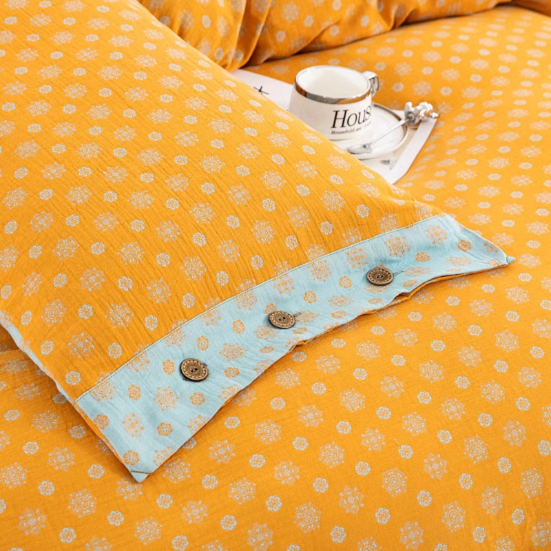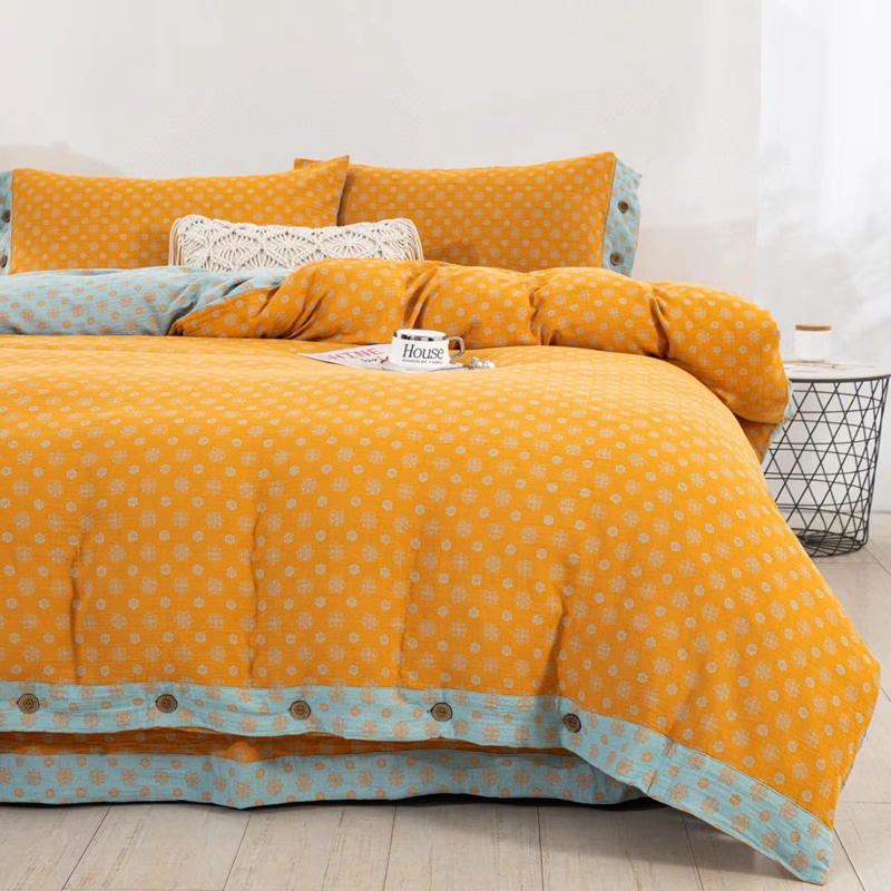 商品名称:双层纱家居 2024新款素色四件套 幸福星黄
