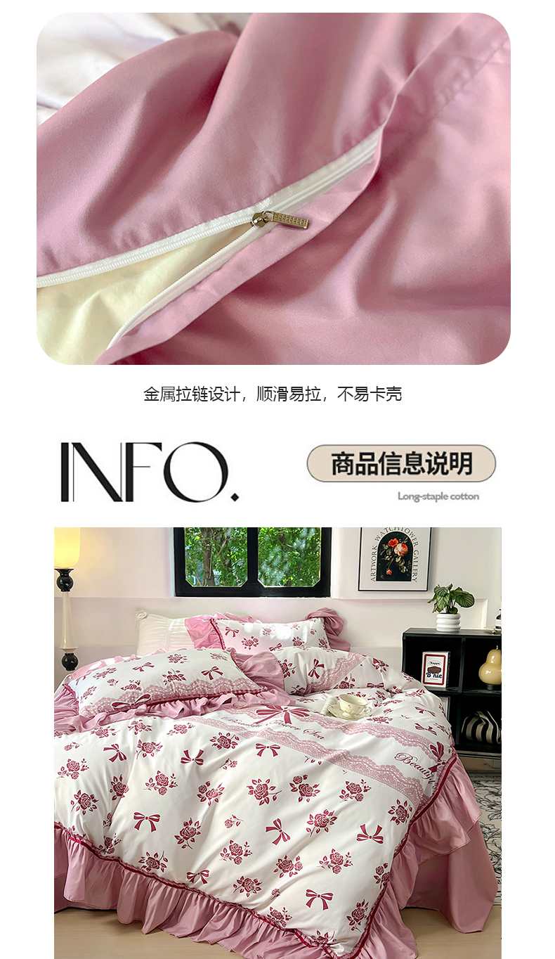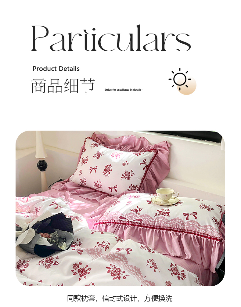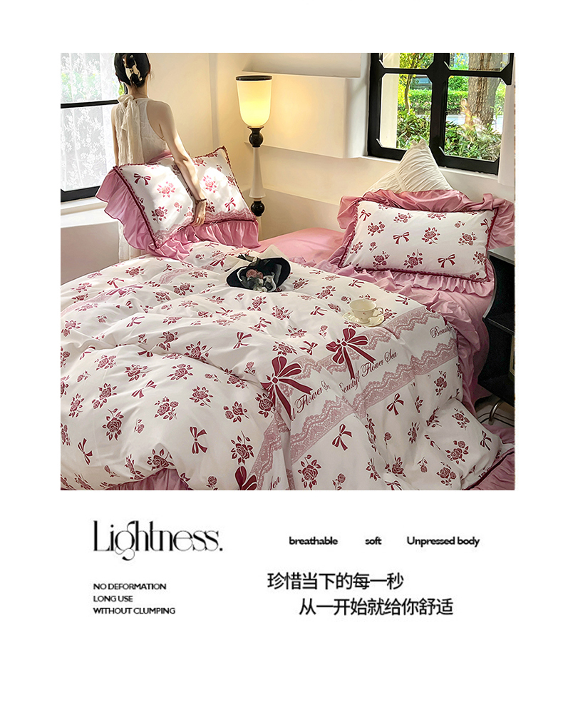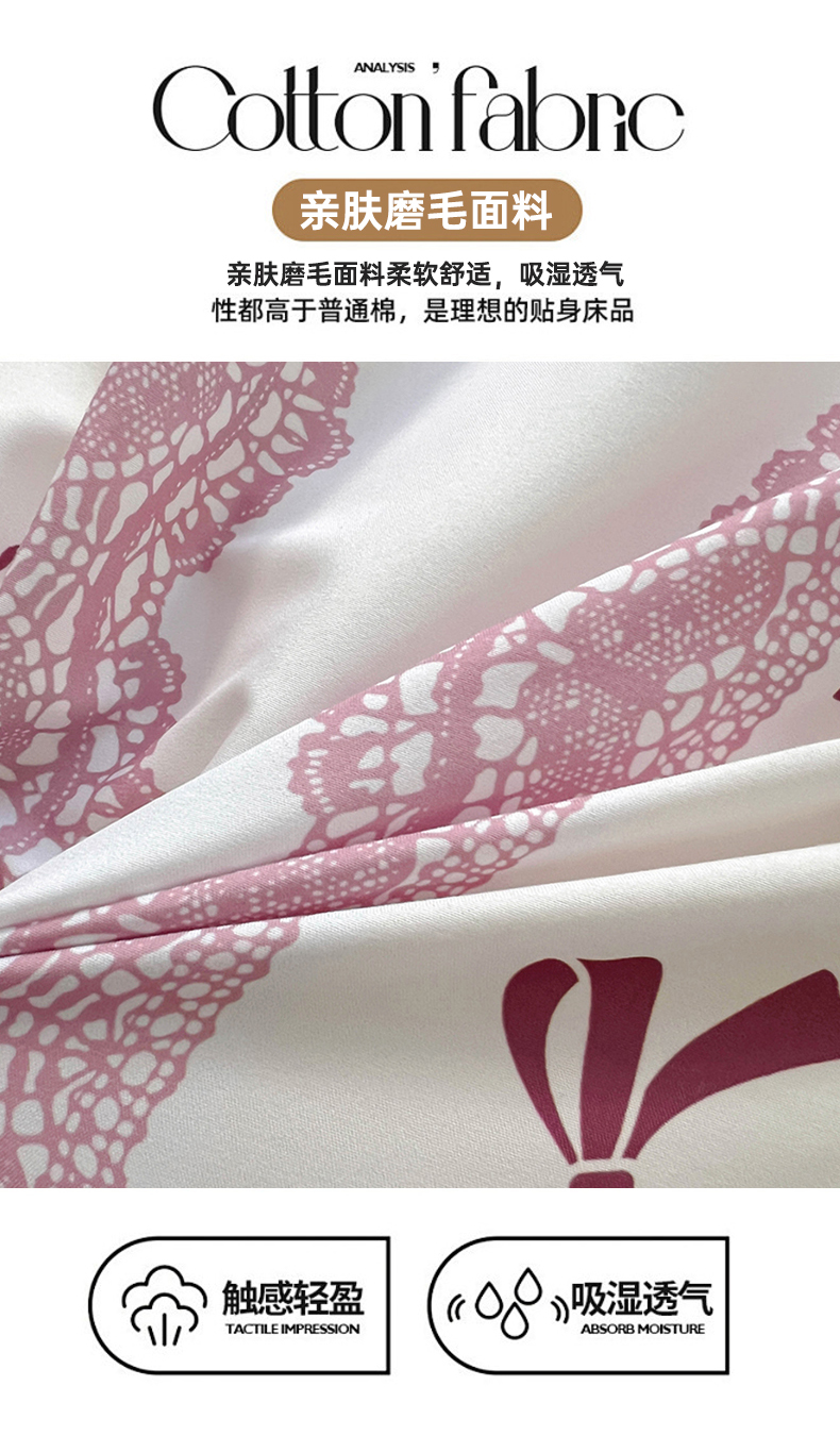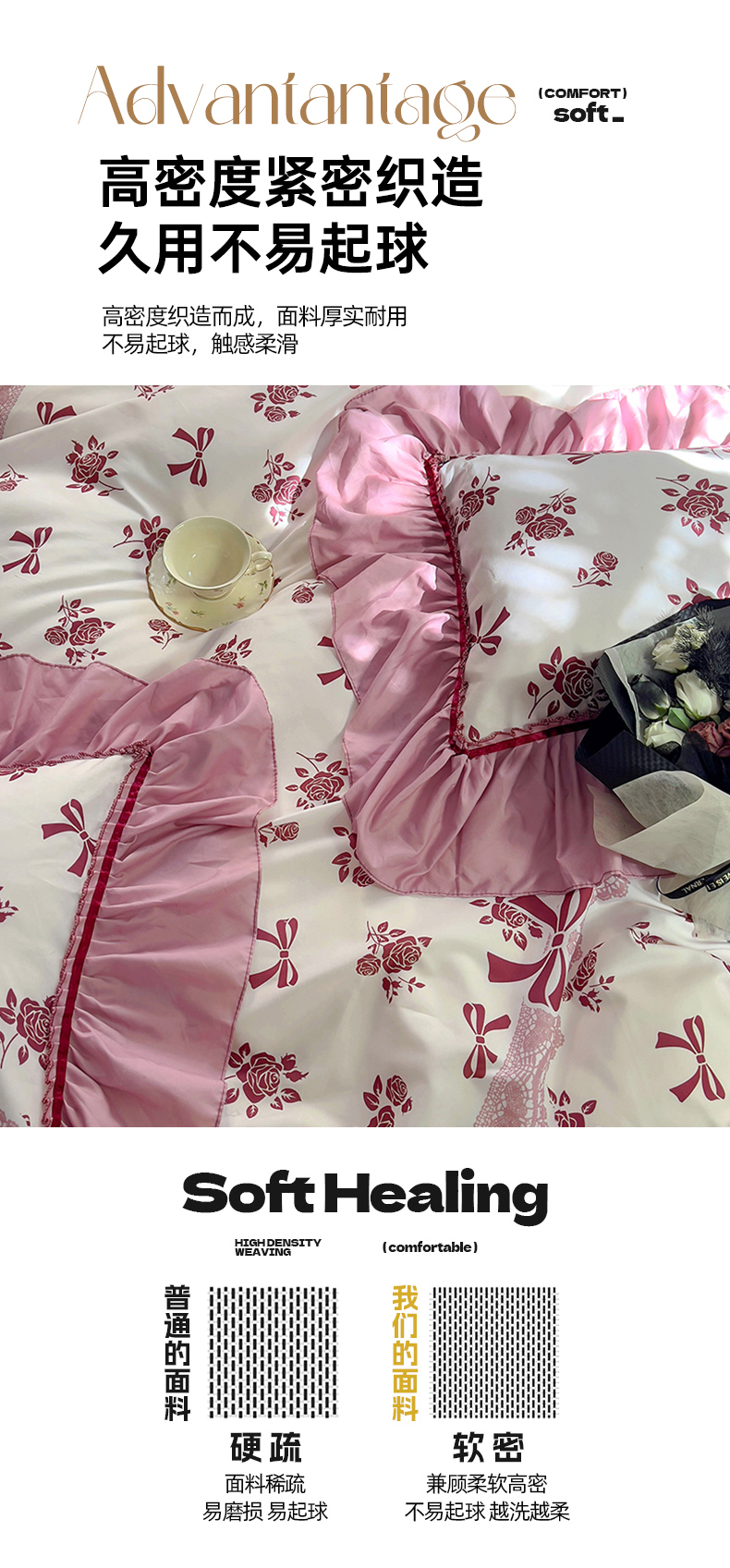 商品名称:春光里 2024新款法式大花边亲肤磨毛四件套 花样年华(桃红)