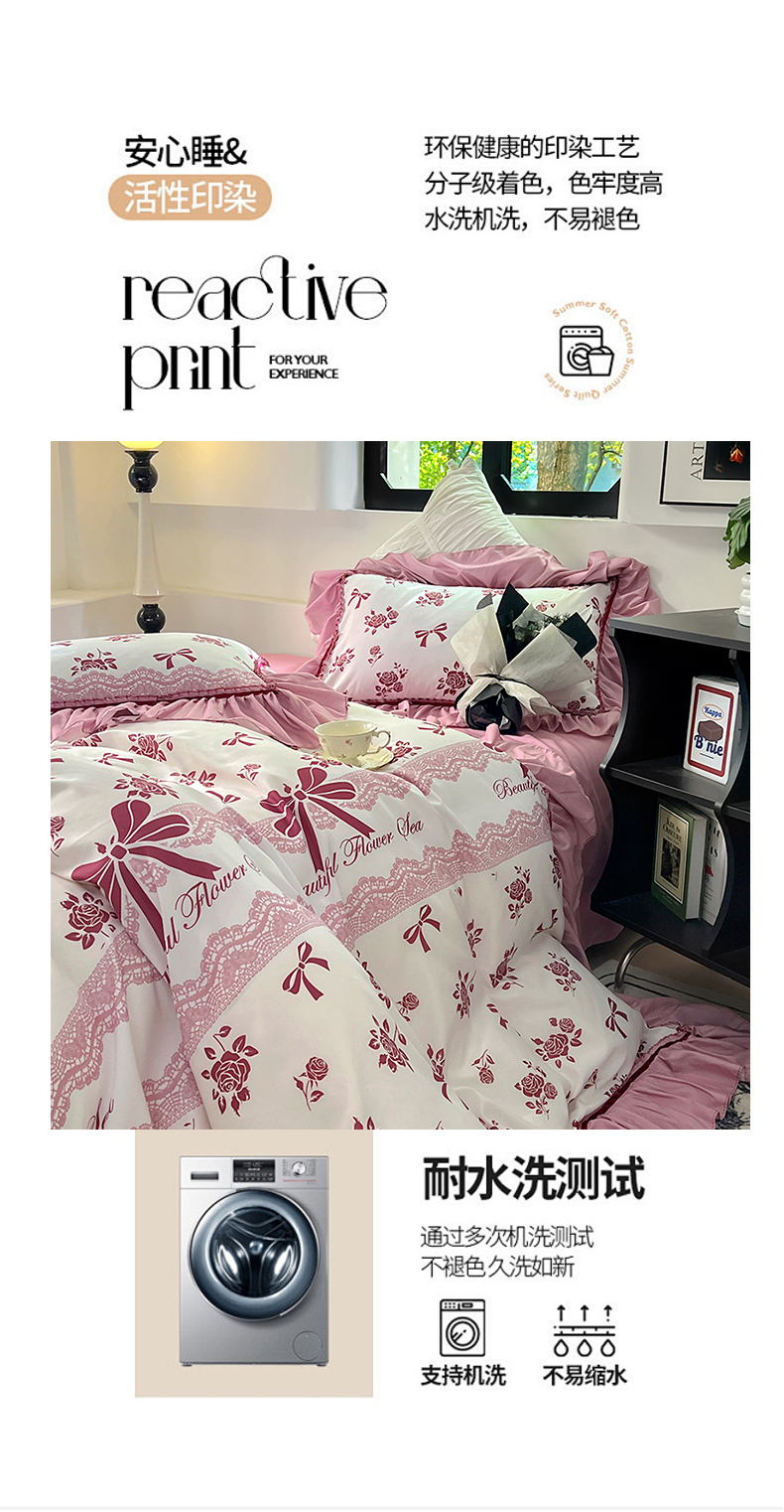 (总)春光里 2025新款亲肤舒适云感双层纱花边四件套 风格二(提供买家秀),澜花,百福蓝,旧梦蔷薇,绿野,梦境织格,摩卡樱桃,桃乐丝,夭夭,莹光,紫风铃