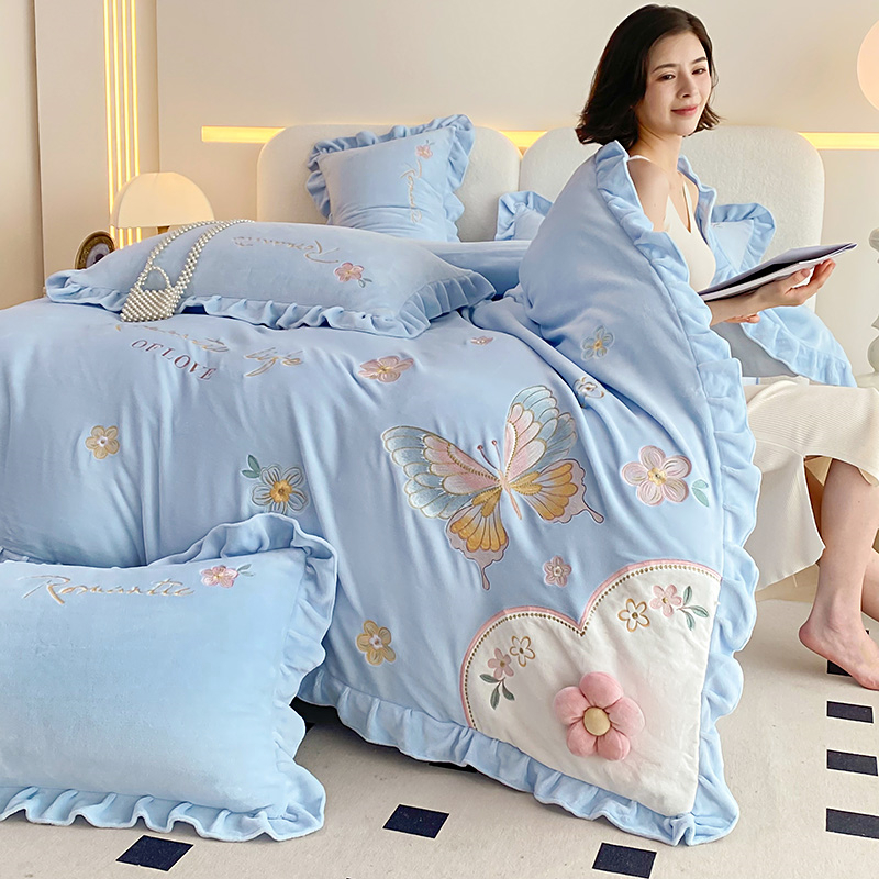 商品名称:(总)可以家居 2024新款全消光牛奶绒云绒法兰绒四件套-小甜心