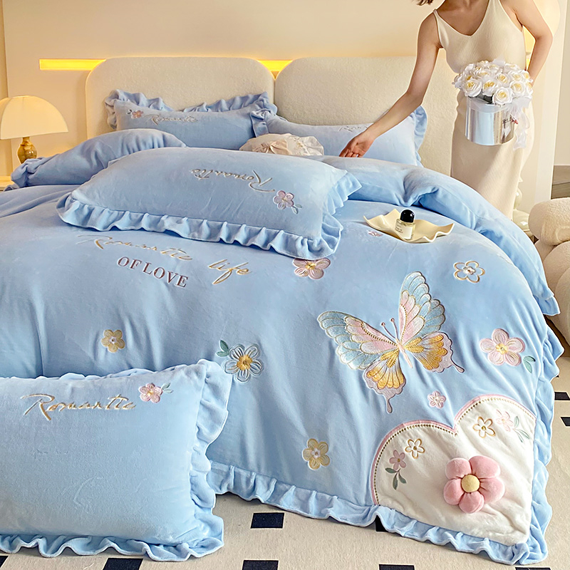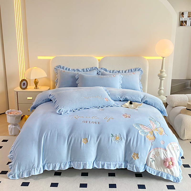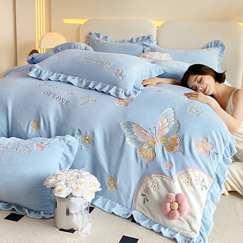 (总)可以家居 2024新款全消光牛奶绒云绒法兰绒四件套-小甜心