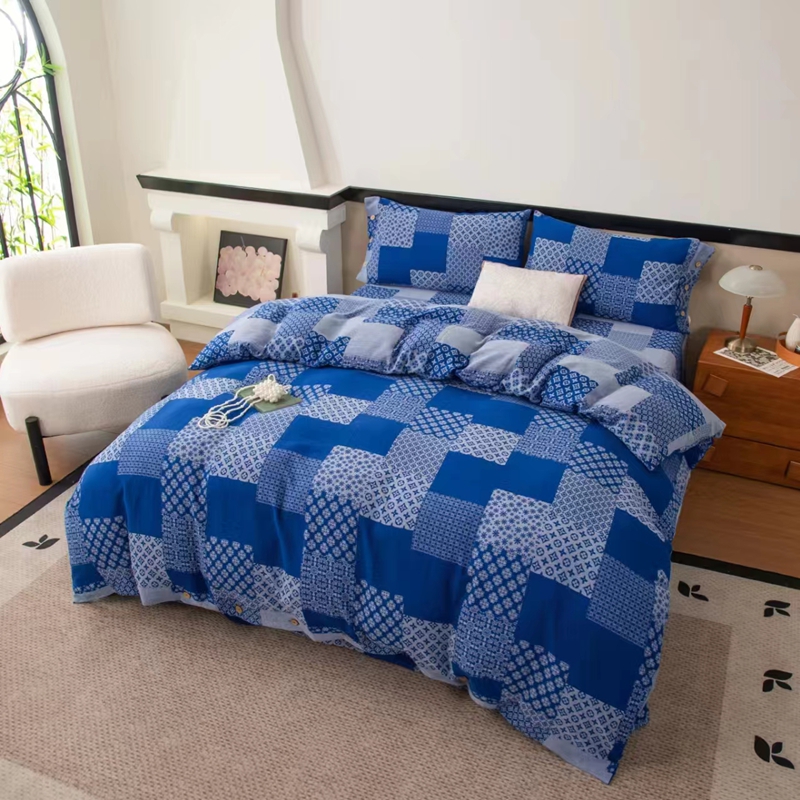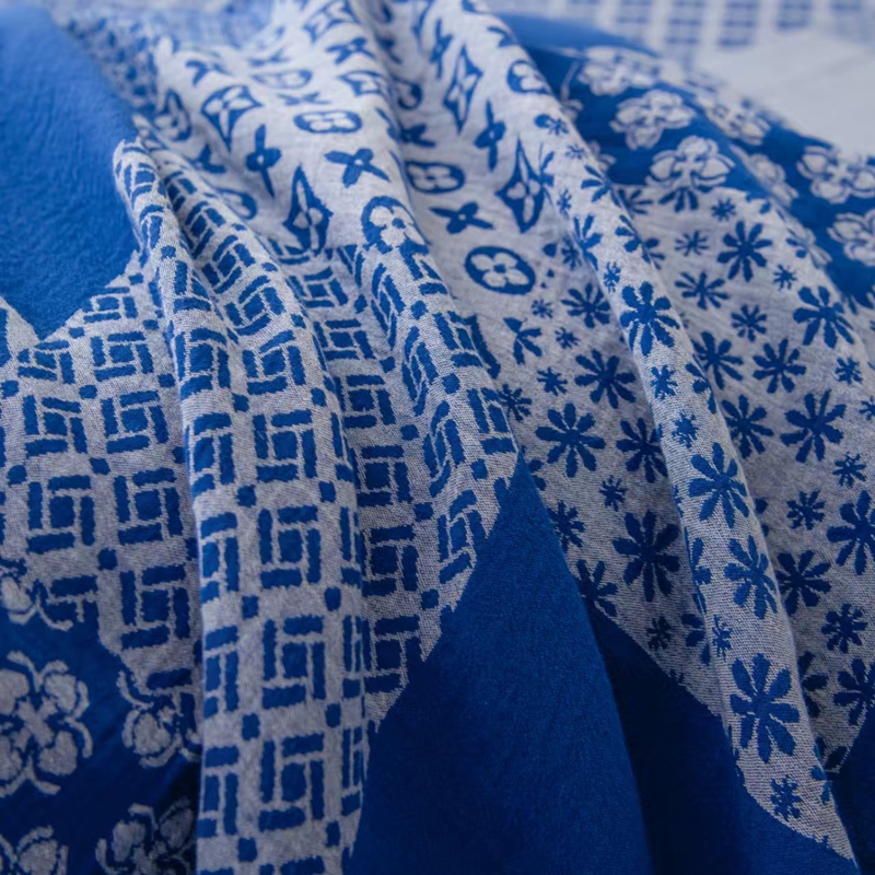 (总)双层纱家居 2024新款双层纱四件套,百福蓝,梦百合,水墨米黄,水墨米兰,西雅图蓝