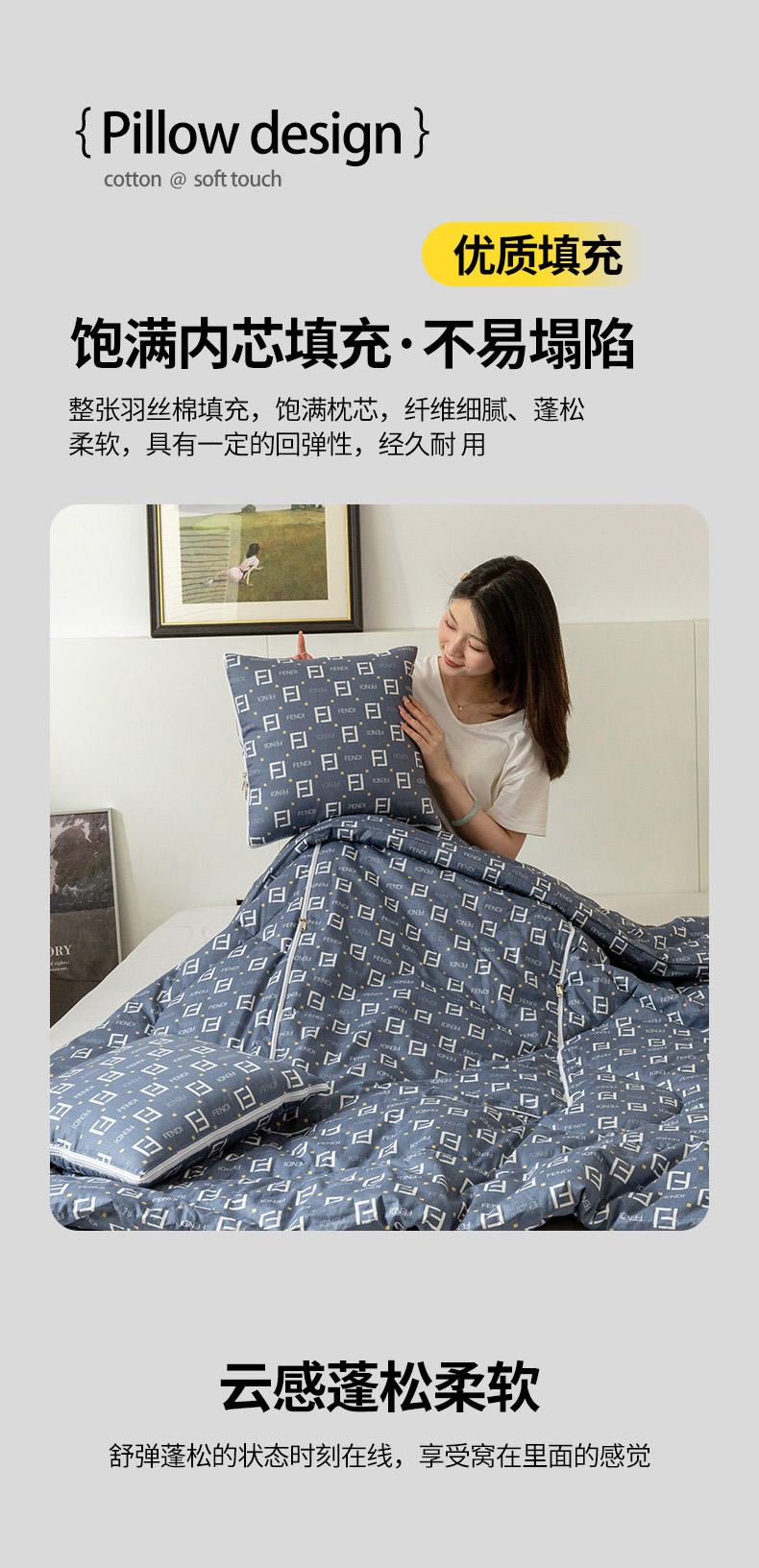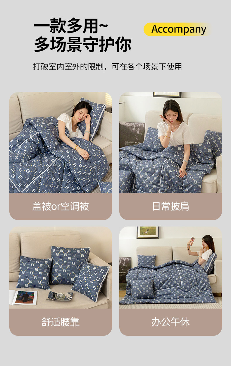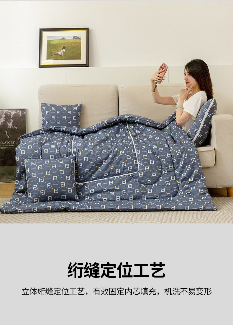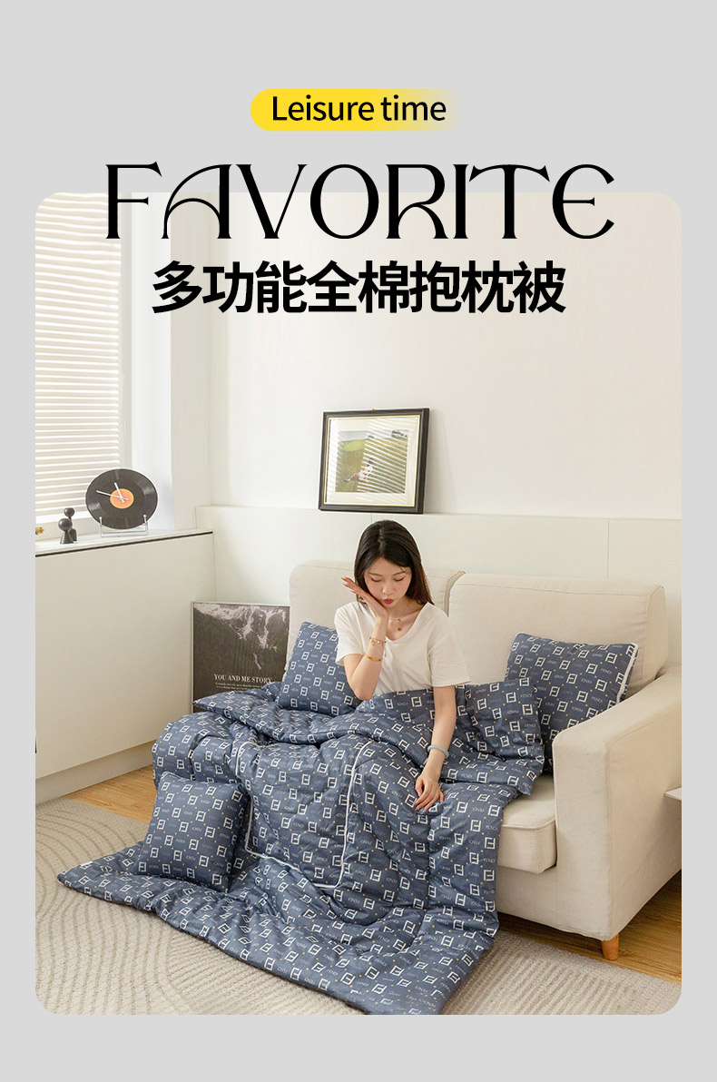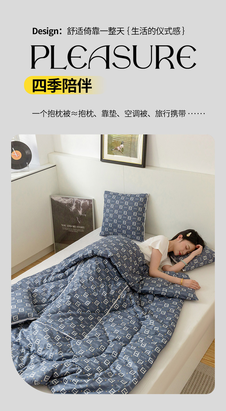雷人家纺 2024新款A类全棉喷气13372印花多功能抱枕被 字母FL