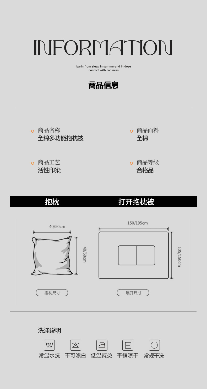 商品名称:雷人家纺 2024新款A类全棉喷气13372印花多功能抱枕被 字母FL