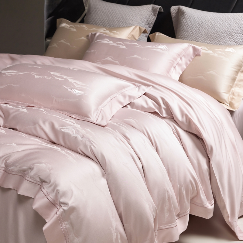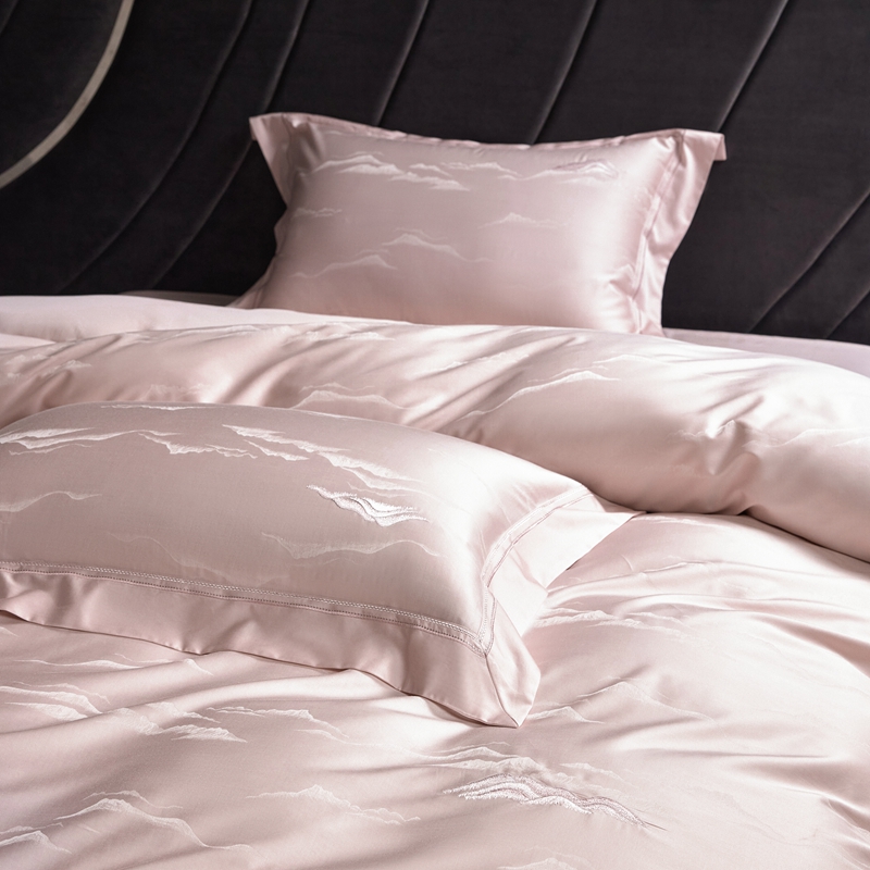 榻尚家居 2025新款天丝棉提花加绣花工艺款床品四件套-山岚夏梦 山岚夏梦 樱花粉