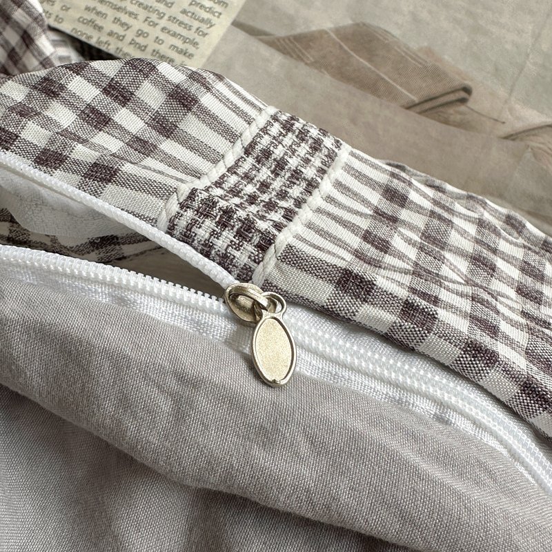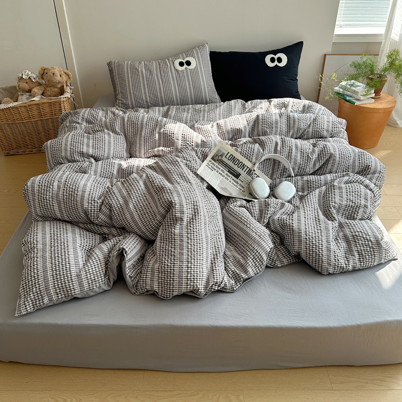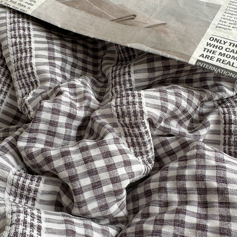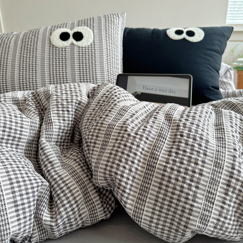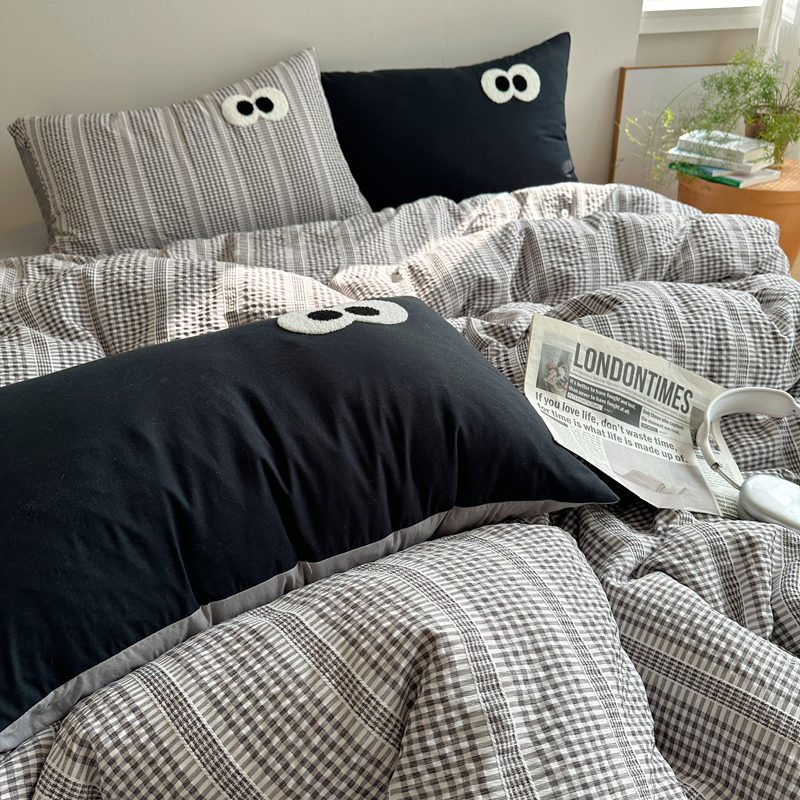 顾里家纺 2025新款大眼混搭色织水洗棉毛巾绣套件 黑灰格