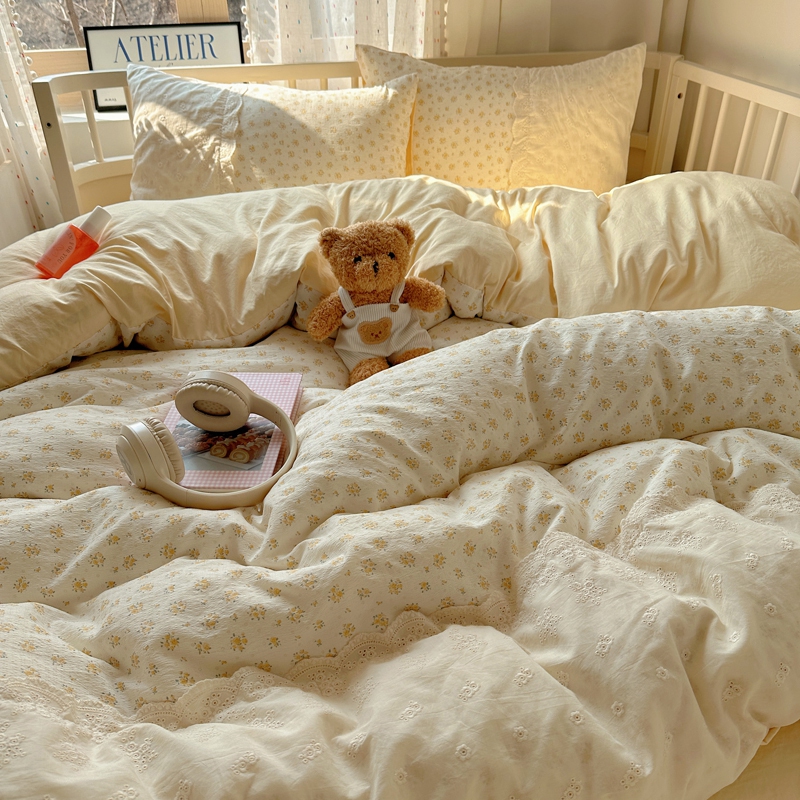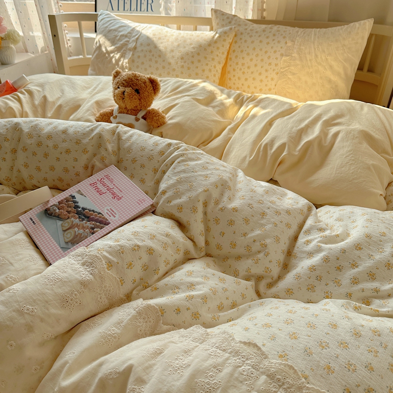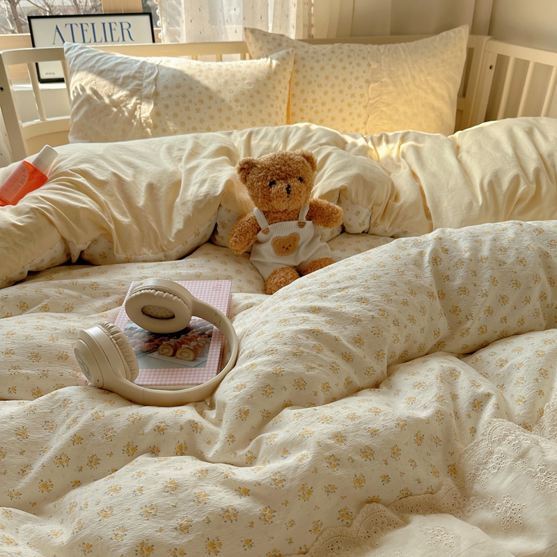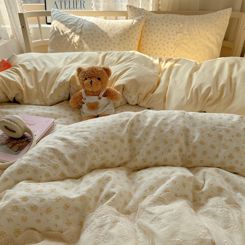 商品名称:顾里2025新款蕾丝花边云感双层纱套件四件套 复古小花