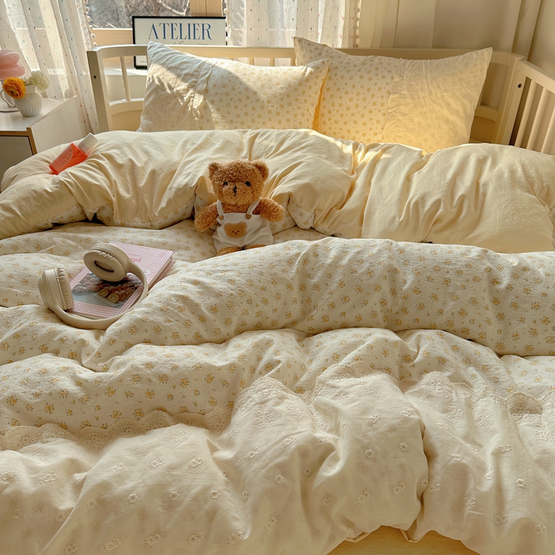(总)顾里家纺 2026新款ins韩风刺绣云朵棉四件套,ins玫瑰,白桃少女,粉兔兔,蓝樱桃,圣诞树,线条狗,小桔梗,小蘑菇,小企鹅
