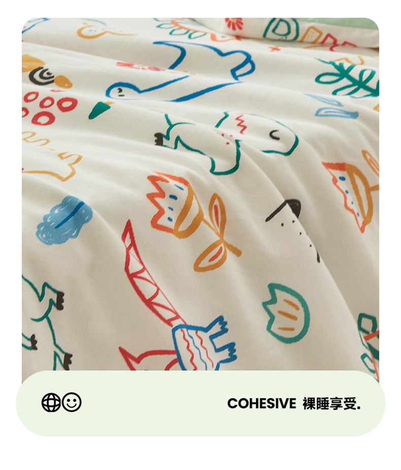 艾佳宝贝 2025新款A类儿童全棉多功能单被套可拆式夏被 好多恐龙