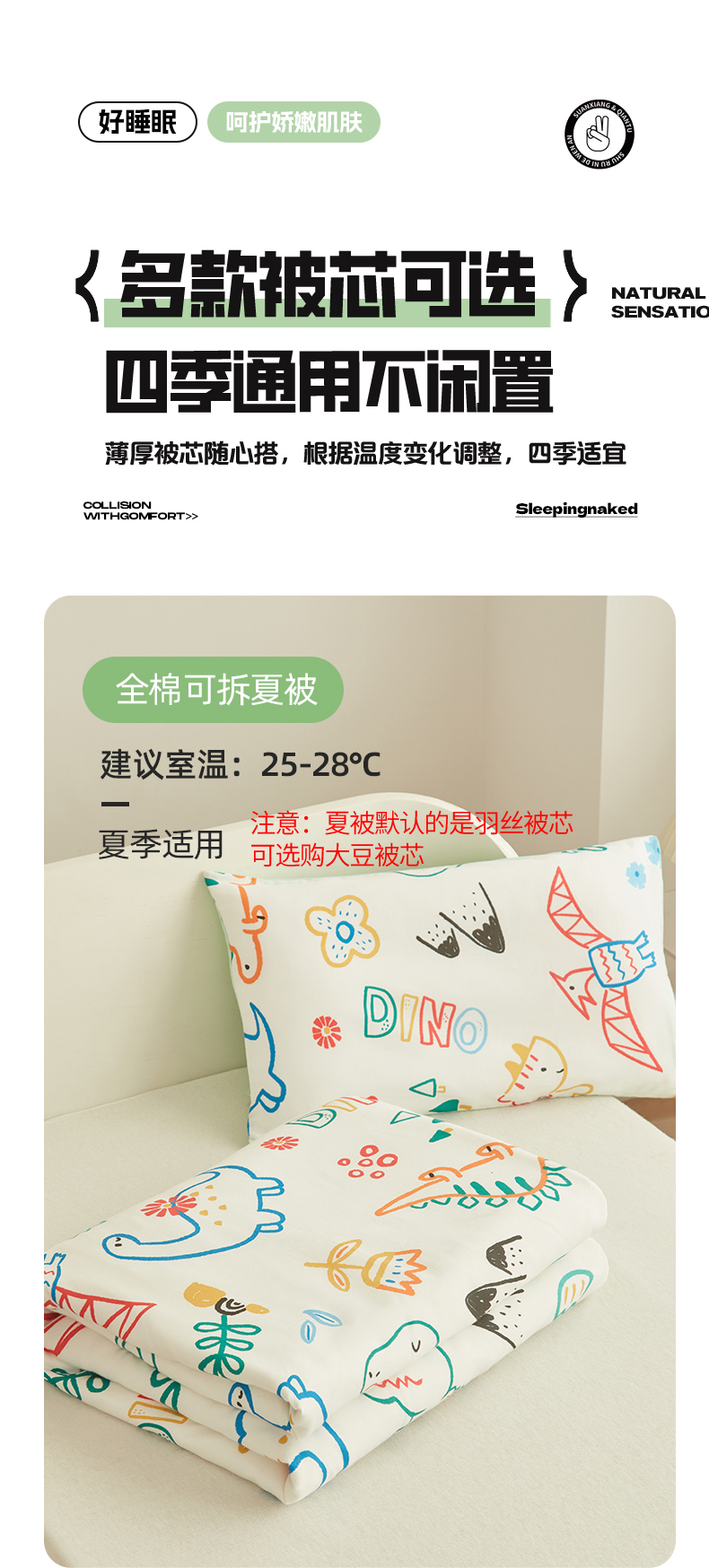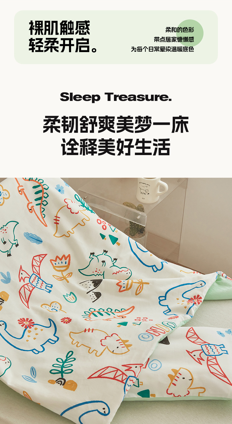 商品名称:艾佳宝贝 2025新款A类儿童全棉多功能单被套可拆式夏被 好多恐龙