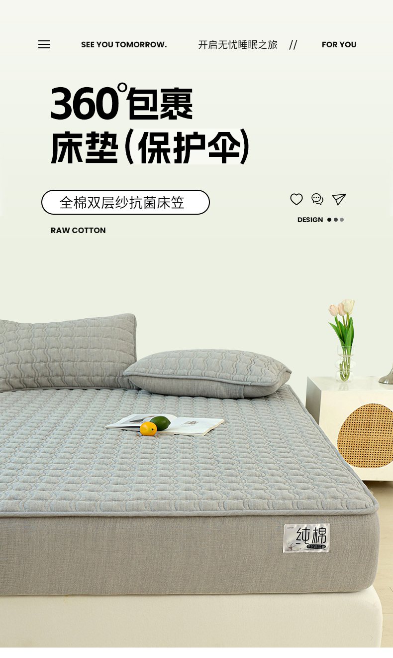 当前位置: 91家纺网 > 商品网购 > 床上用品 > 床笠 > 豪选家纺 2025新款A类抗菌高支高密纯棉色织正宗双层纱夹棉床笠 薄荷绿