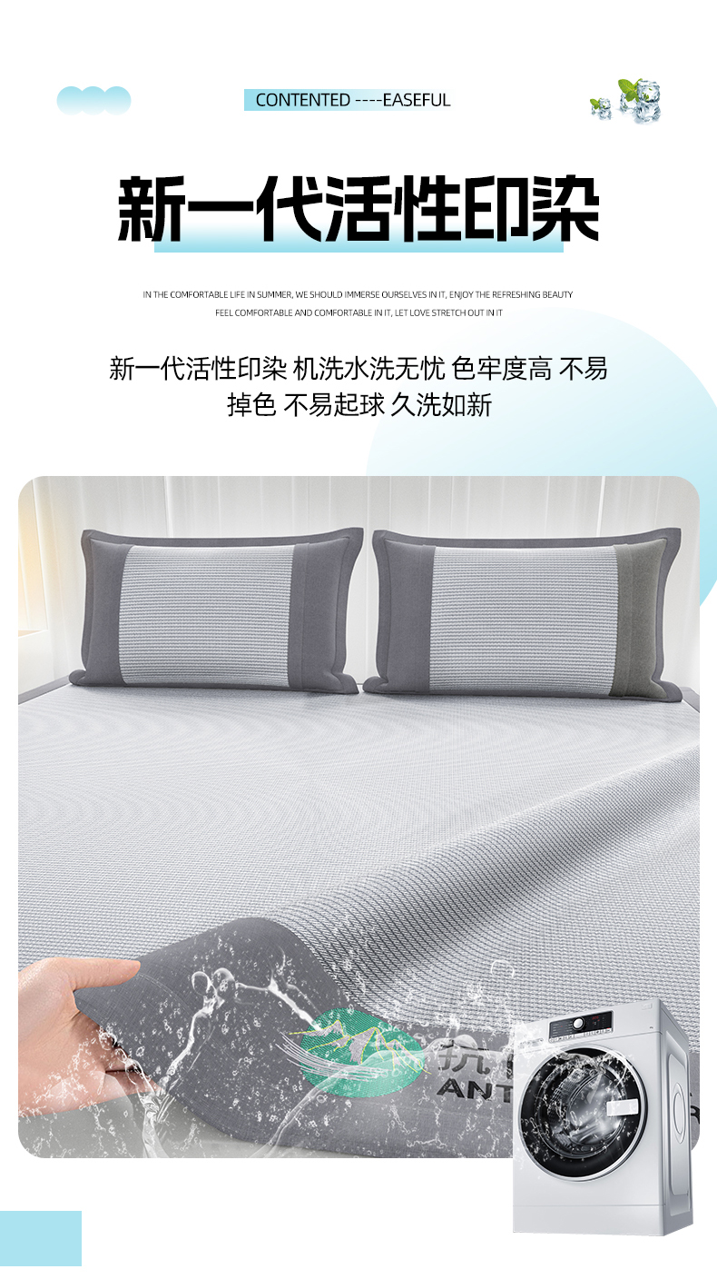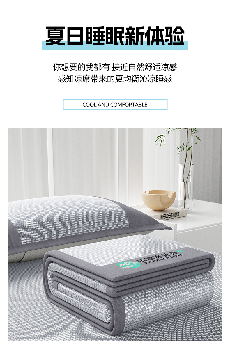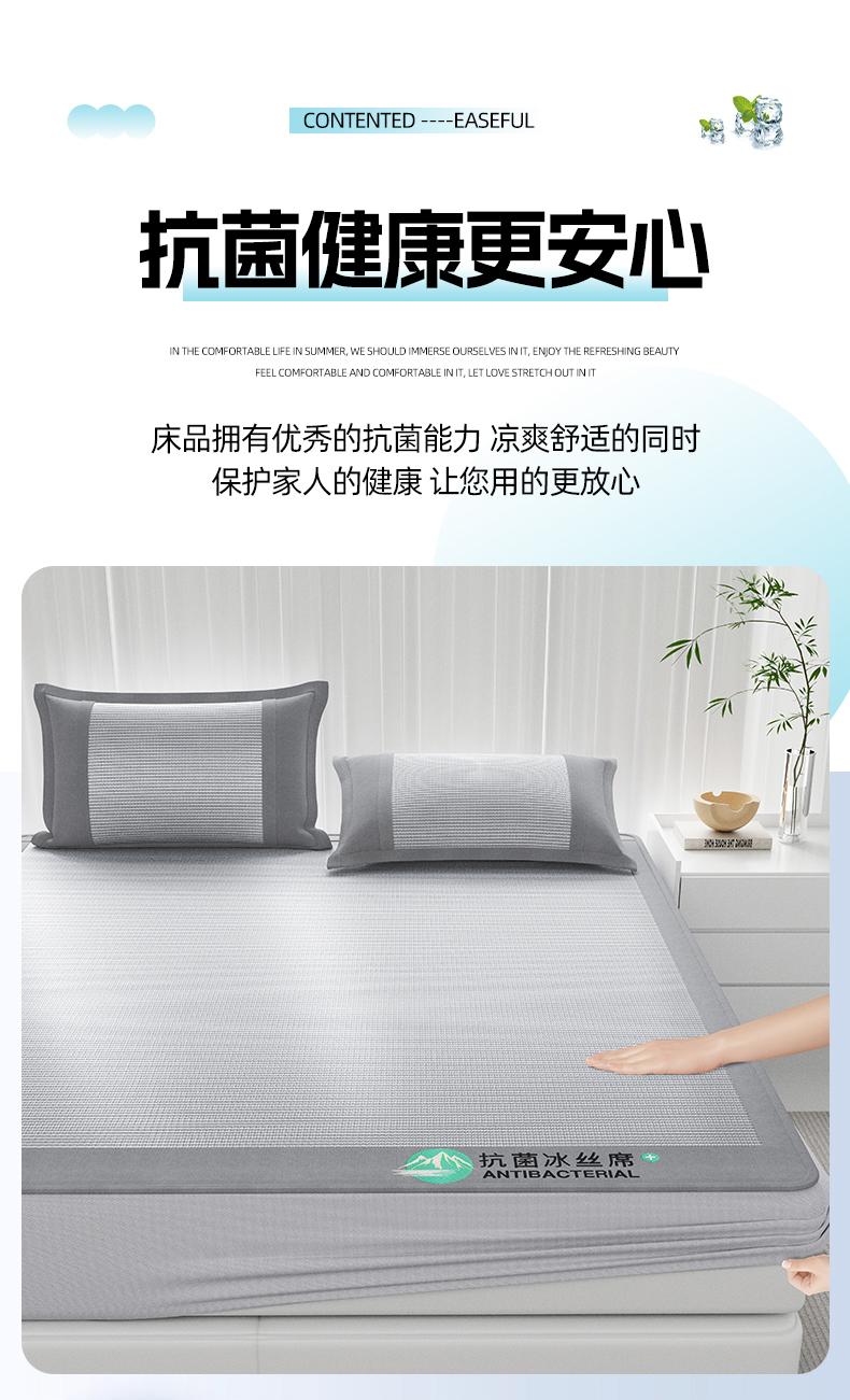 • 91家纺网 家纺一手货源 找家纺 爱宝被业 2025新款亲肤凉感抗菌冰丝凉席席子 雾云绿