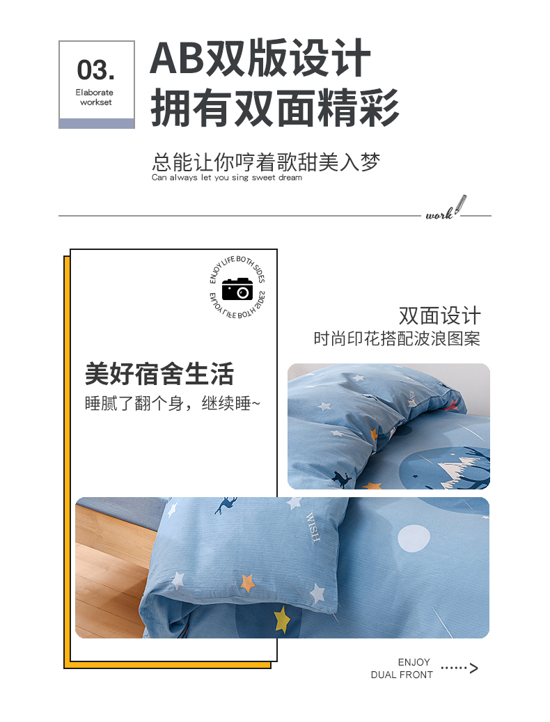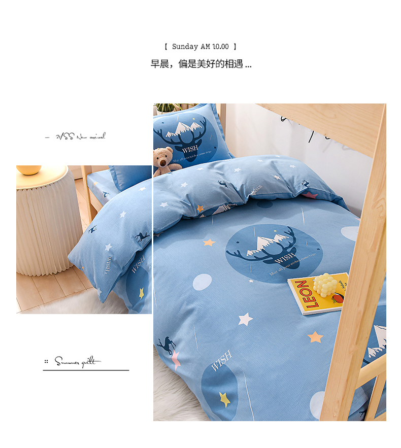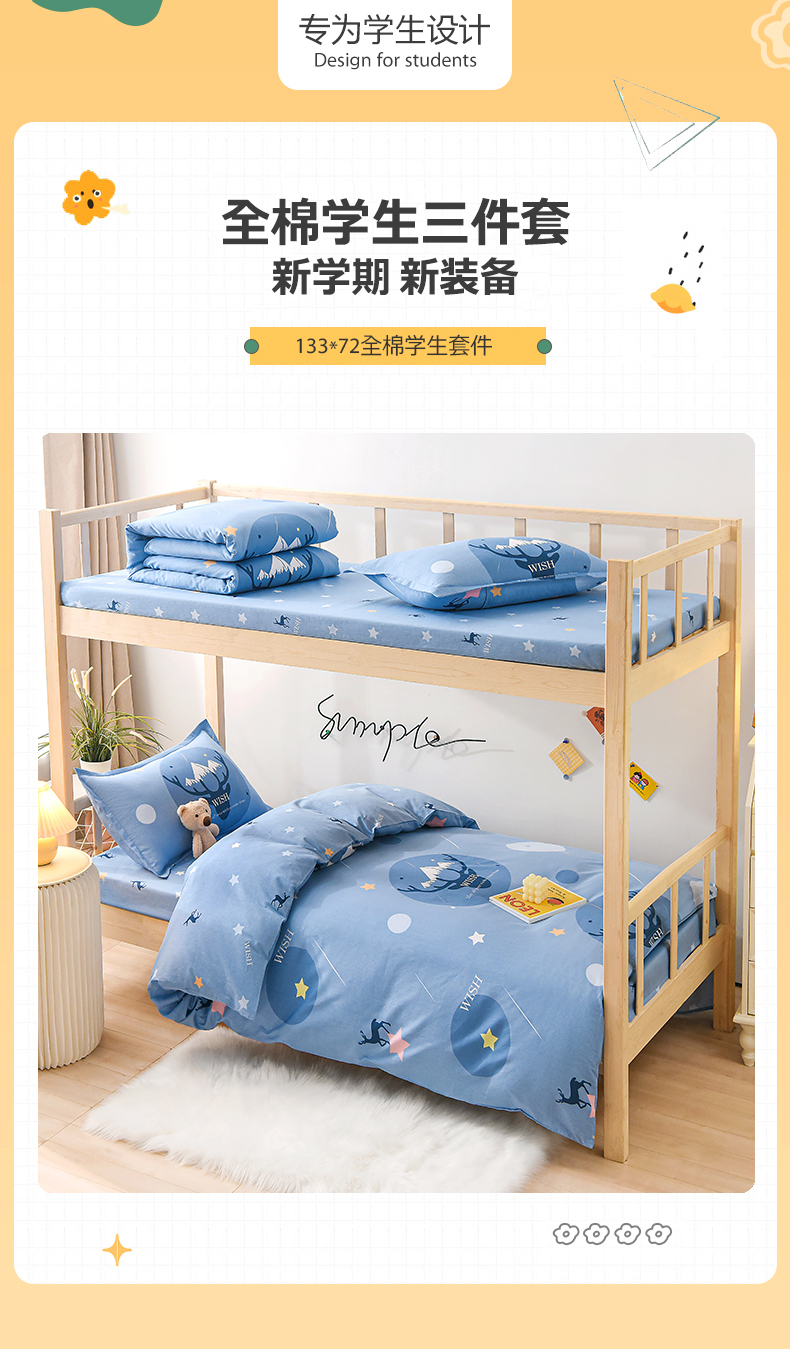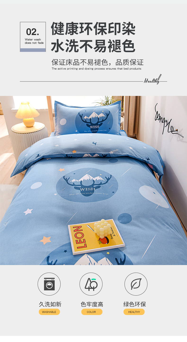 当前位置: 91家纺网 > 商品网购 > 床品套件 > 三件套 > 鑫宇 2025全棉13372床单款印花学生三件套 金鹿角-蓝