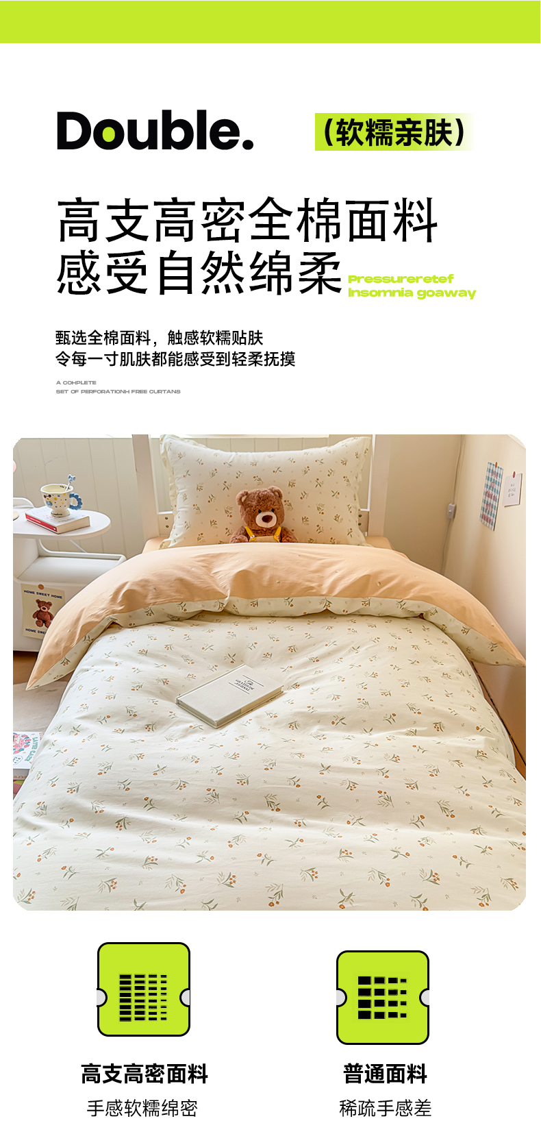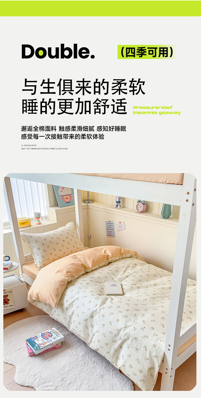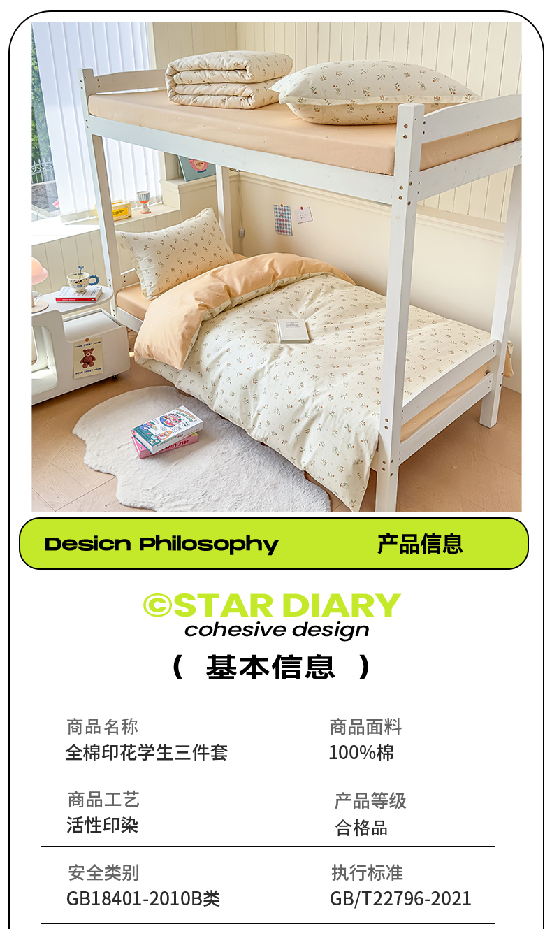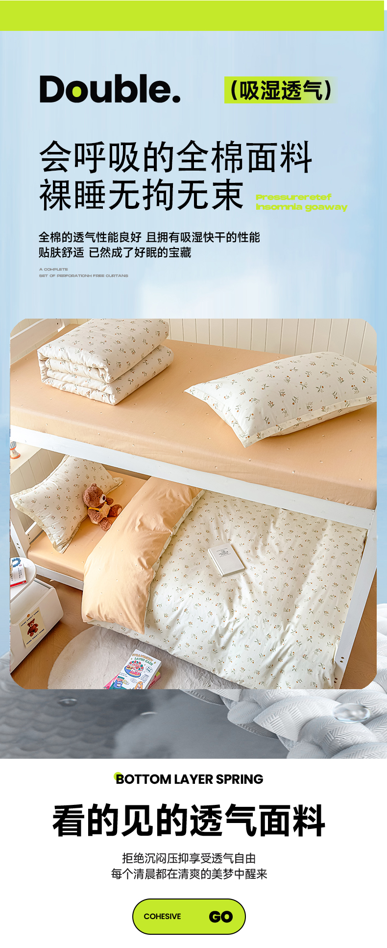 当前位置: 91家纺网 > 商品网购 > 床品套件 > 三件套 > 鑫宇 2025新款全棉纯棉13372宽幅学生上下铺三件套 浅浅花样